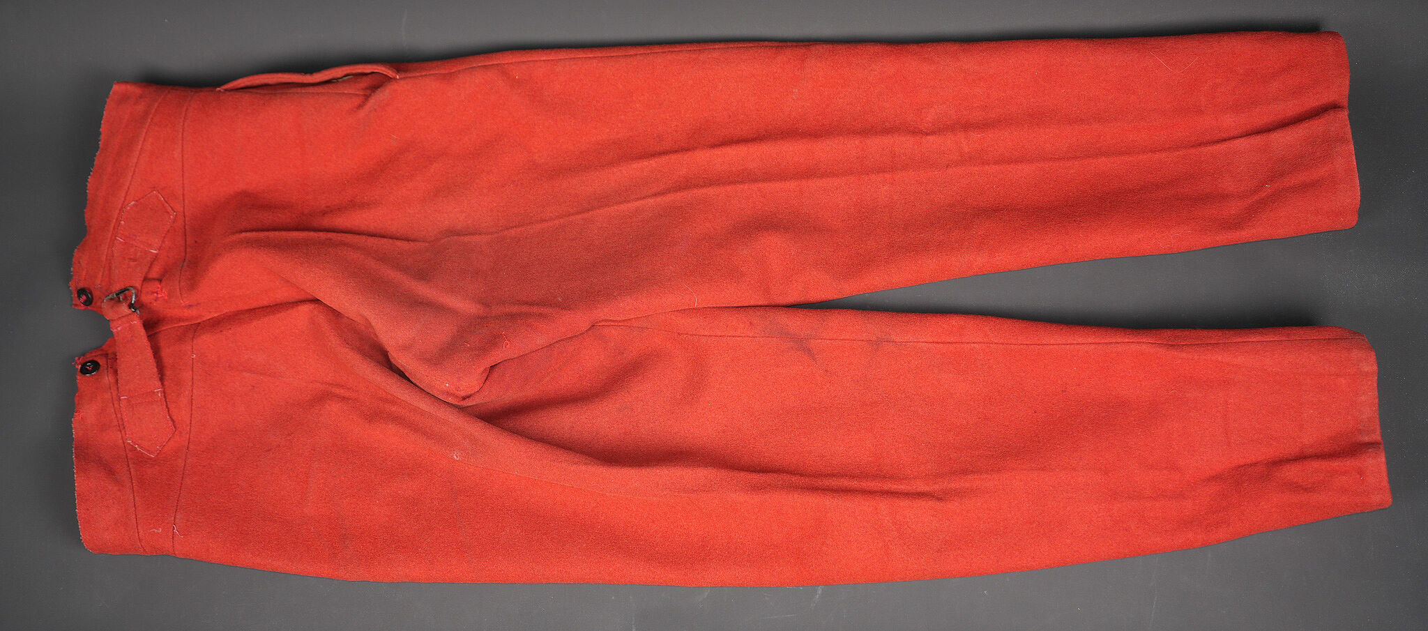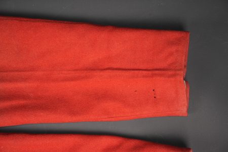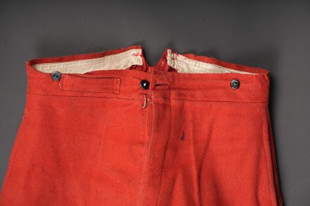 Détails de la vente >Pantalon 1867 troupe. En drap garance, pattes à l’intérieur des poches supprimées, martingales présentes. Le pantalon se ferme à l’aide de cinq boutons et un crochet. Doublure en... en savoir plus