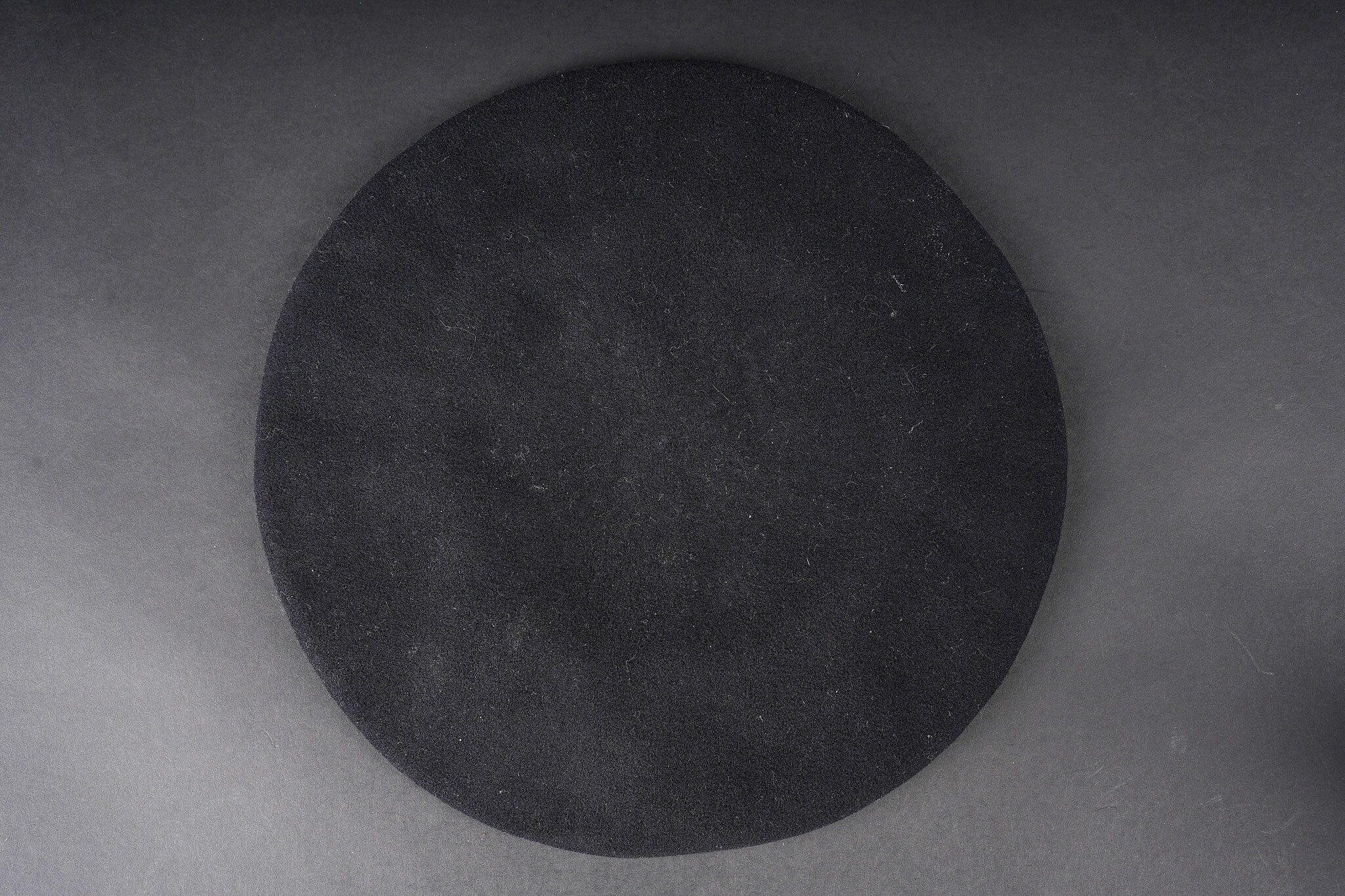 Tarte 1889 infanterie alpine. Confectionnée en tricot de laine bleue foncé sans couture. Aucune doublure, grenade en drap garance rapportée. Tarte légèrement plus petite que le diamètre réglementaire 31cm. Model 1889 Alpine infantry beret. Knitted in dark blue wool without seam and unlined with applied garance cloth grenade. Slightly smaller than regulation diameter 31 centimetres.