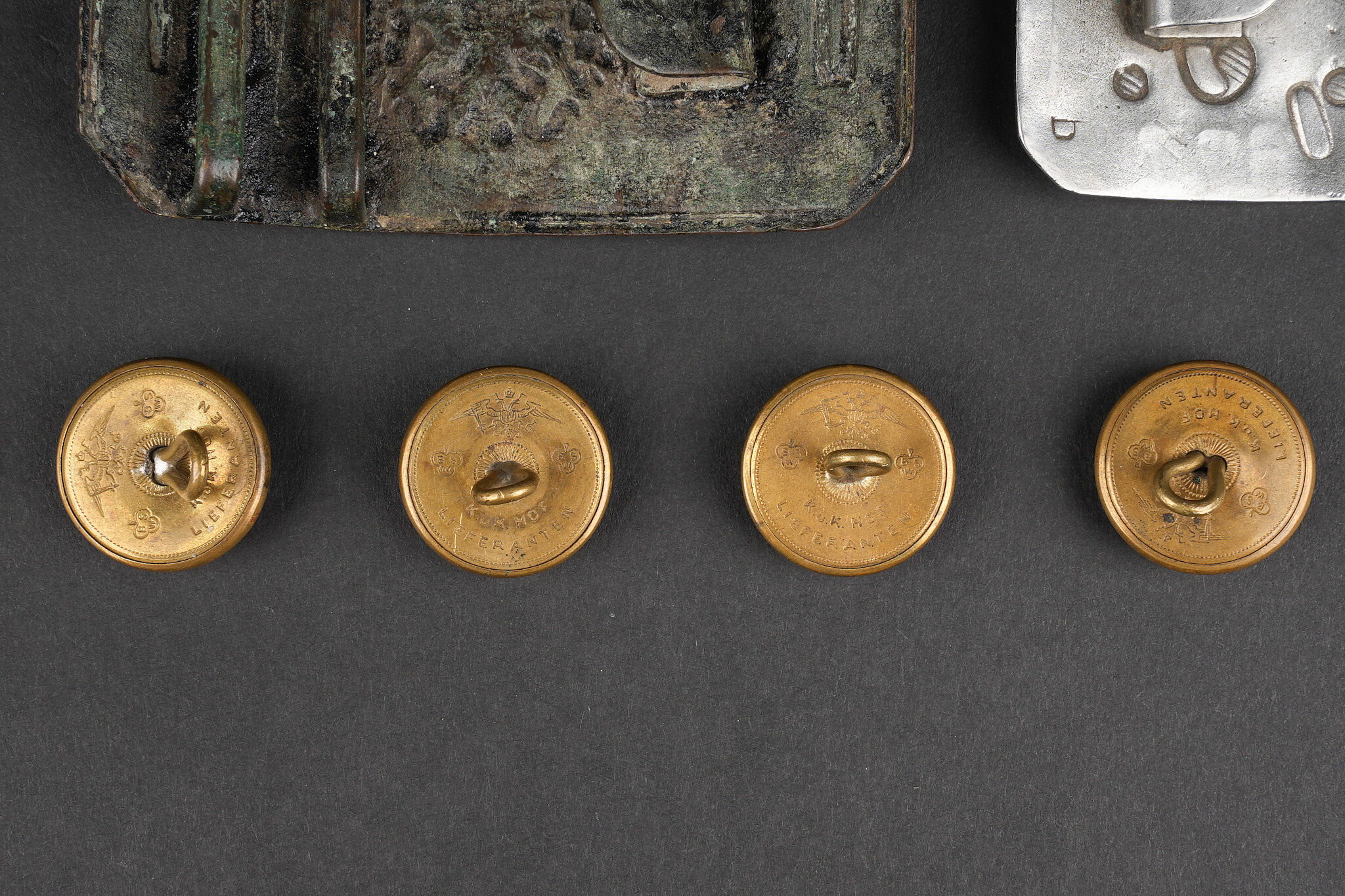 Détails de la vente >Russie impériale Croix de St Georges, boucles de ceinturon et boutons. Croix de St Georges, usure importante. Boucle russe laiton, boucle des chemins de fer, et boucle blanche de cadet ou... en savoir plus