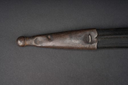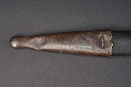 Détails de la vente >Baïonnette allemande S98 export pour la Turquie. Poignée à 2 plaquettes bois type S98 nA, usées, coups. Matricule sur la croisière. Lame du fabricant Simson de Suhl. Poussoir fonctionnel.... en savoir plus