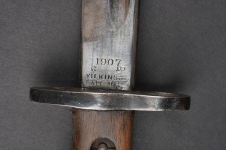 Détails de la vente >Baïonnette anglaise M1907 avec porte fourreau Web 1908. Belle lame fabricant Wilkinson datée Juin 1916. Plaquettes bois en bon état. Parties métalliques de la poignée rebronzées. Bouton... en savoir plus