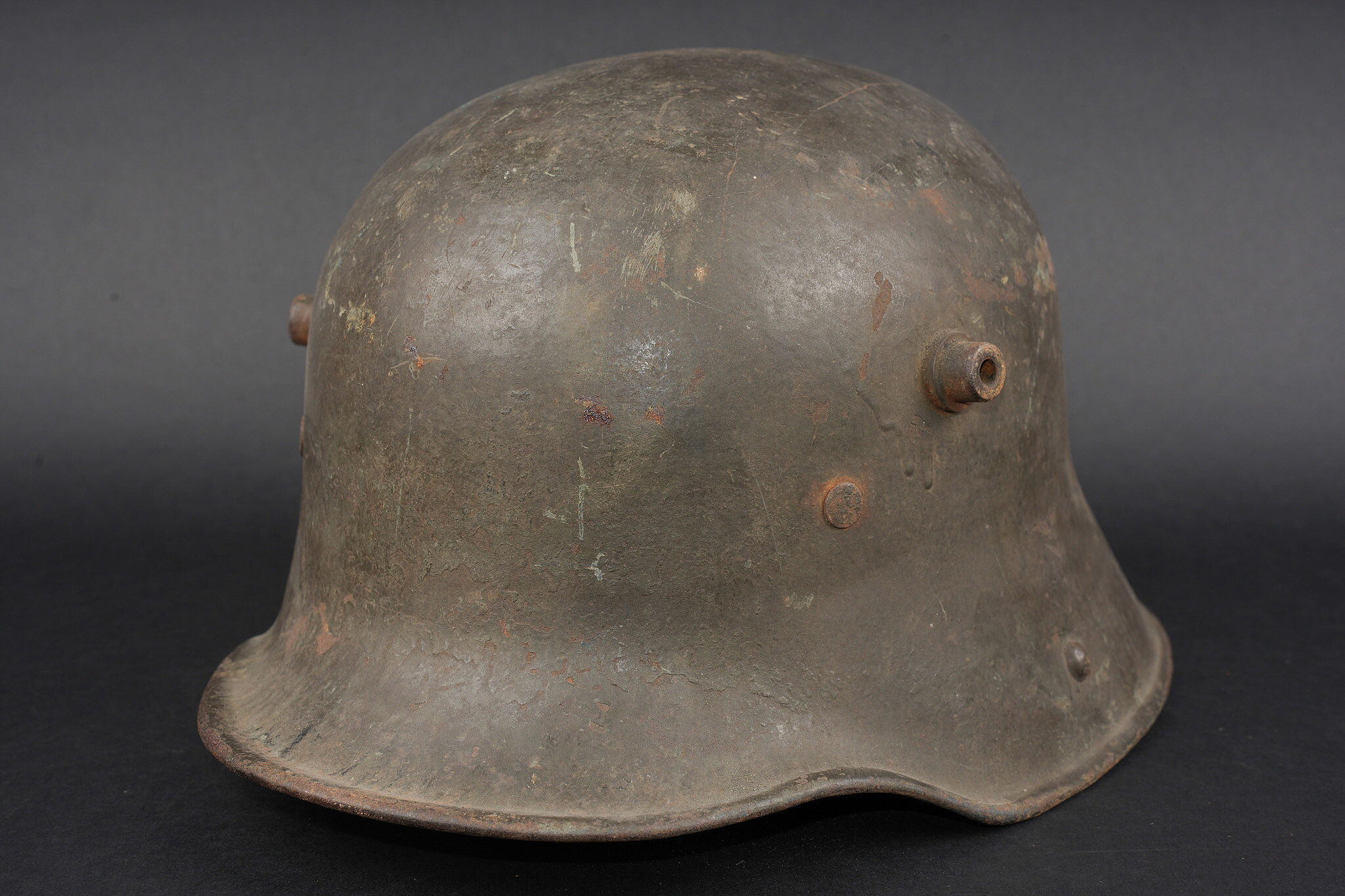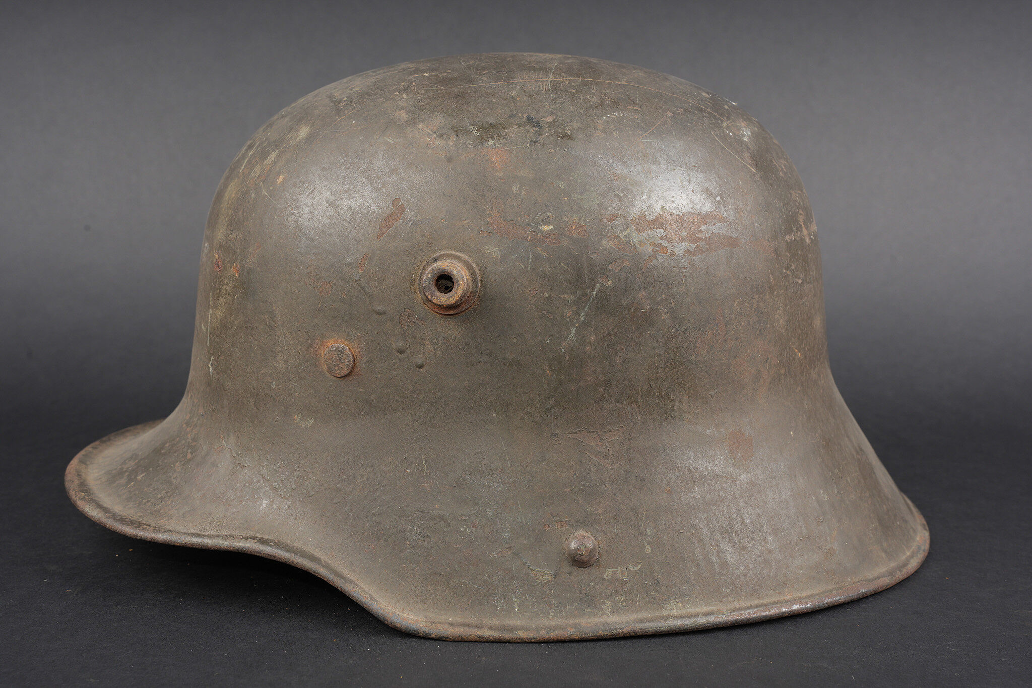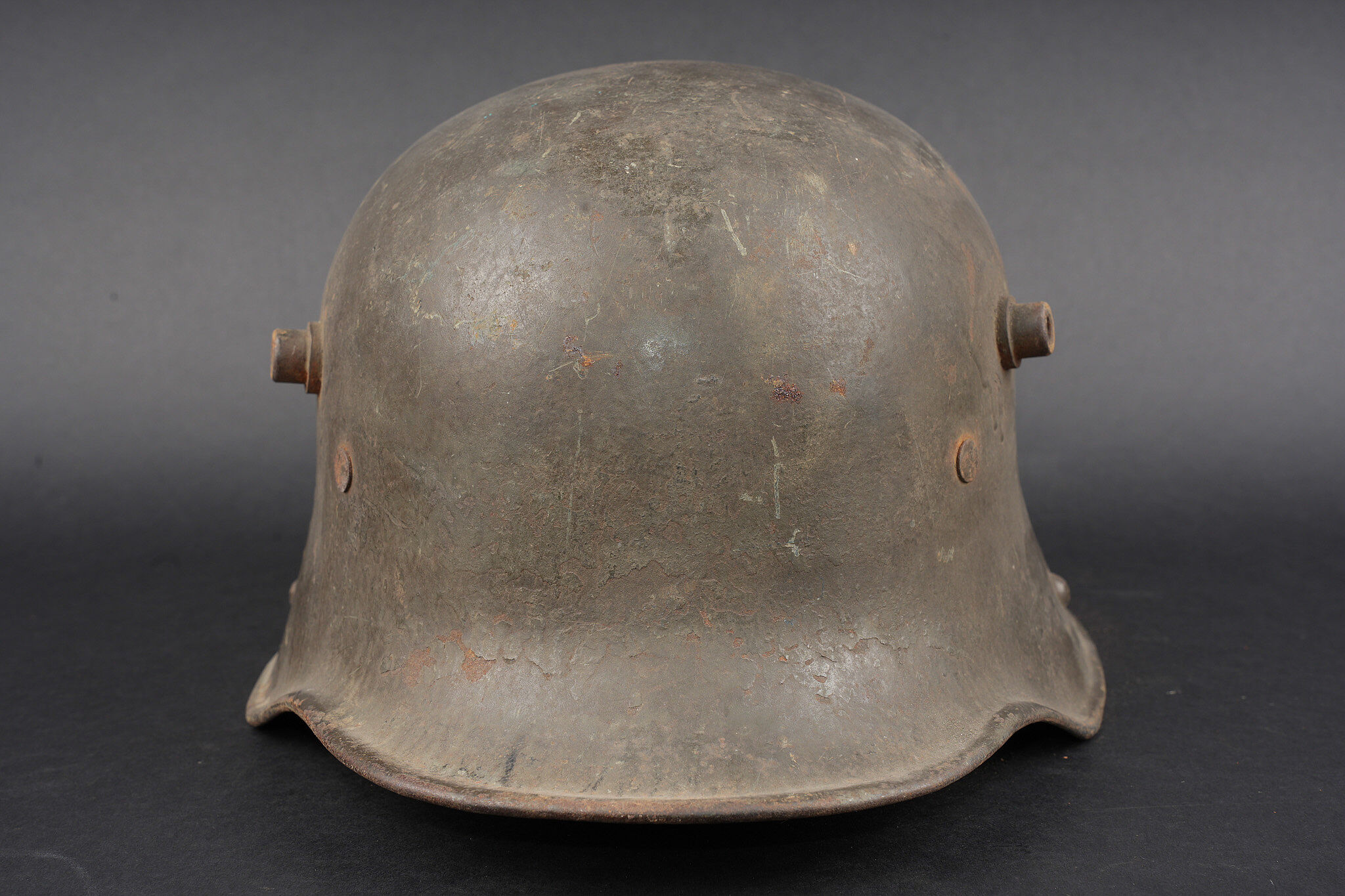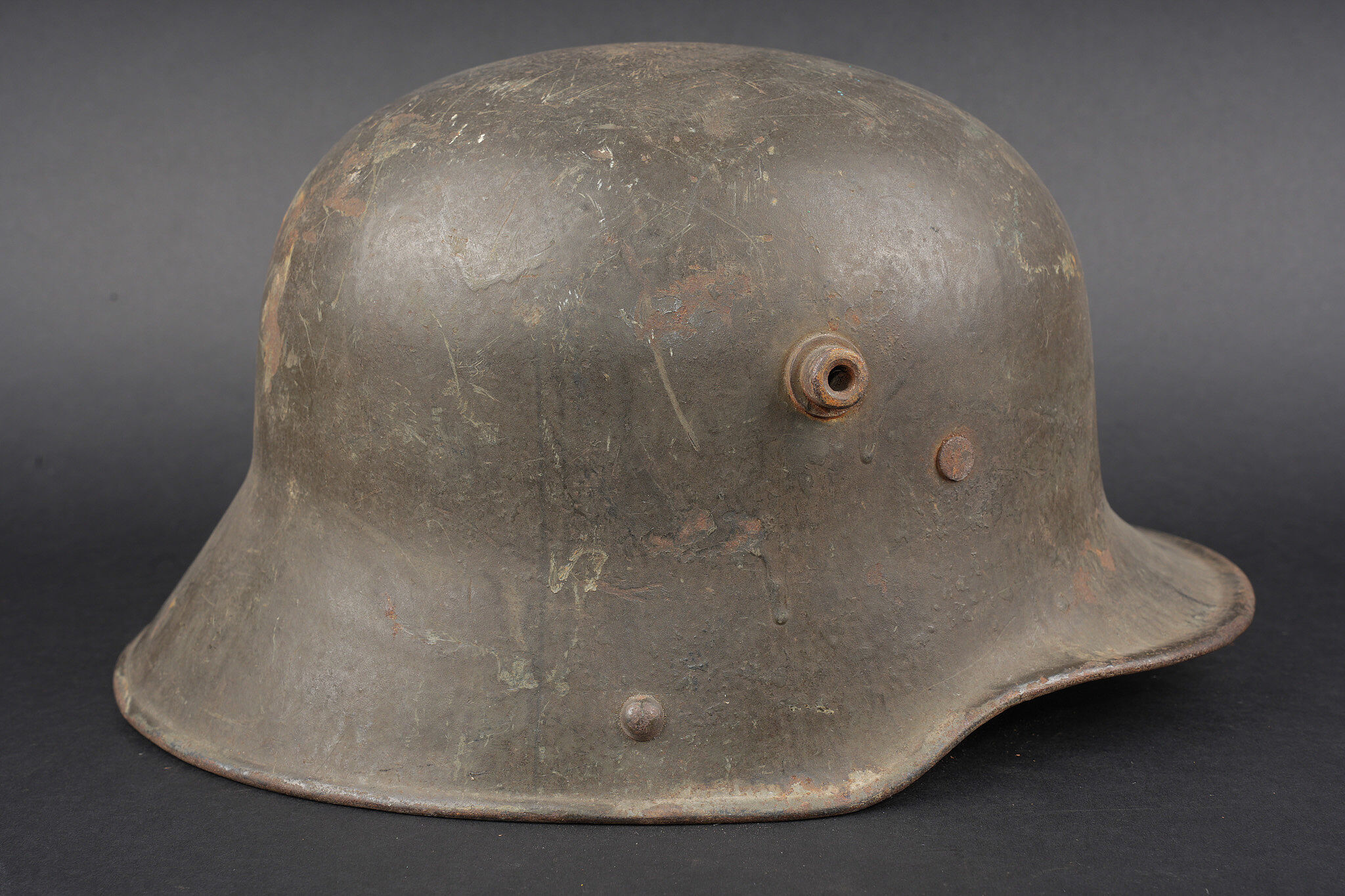 Belle coque de casque allemand Stahlhelm M1916 feldgrau. Fine shell of a German feldgrau Stahlhelm M1916.