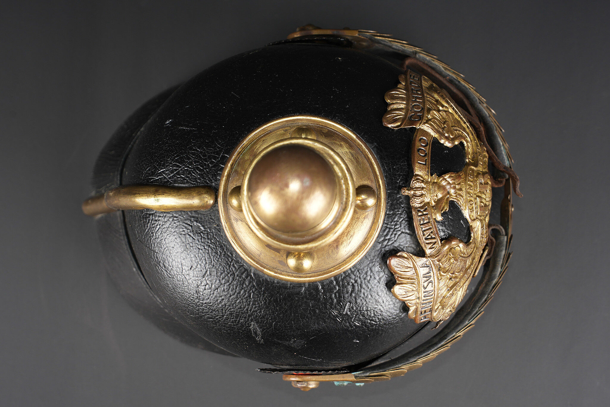 Casque à boule M1895 Peninsula Waterloo Gohrde du Feld Artillerie Regiment Nr 10 de Hanovre. Peu courant casque, non repercé. Plaque monobloc à l’aigle allemand avec banderoles PENINSULA... en savoir plus