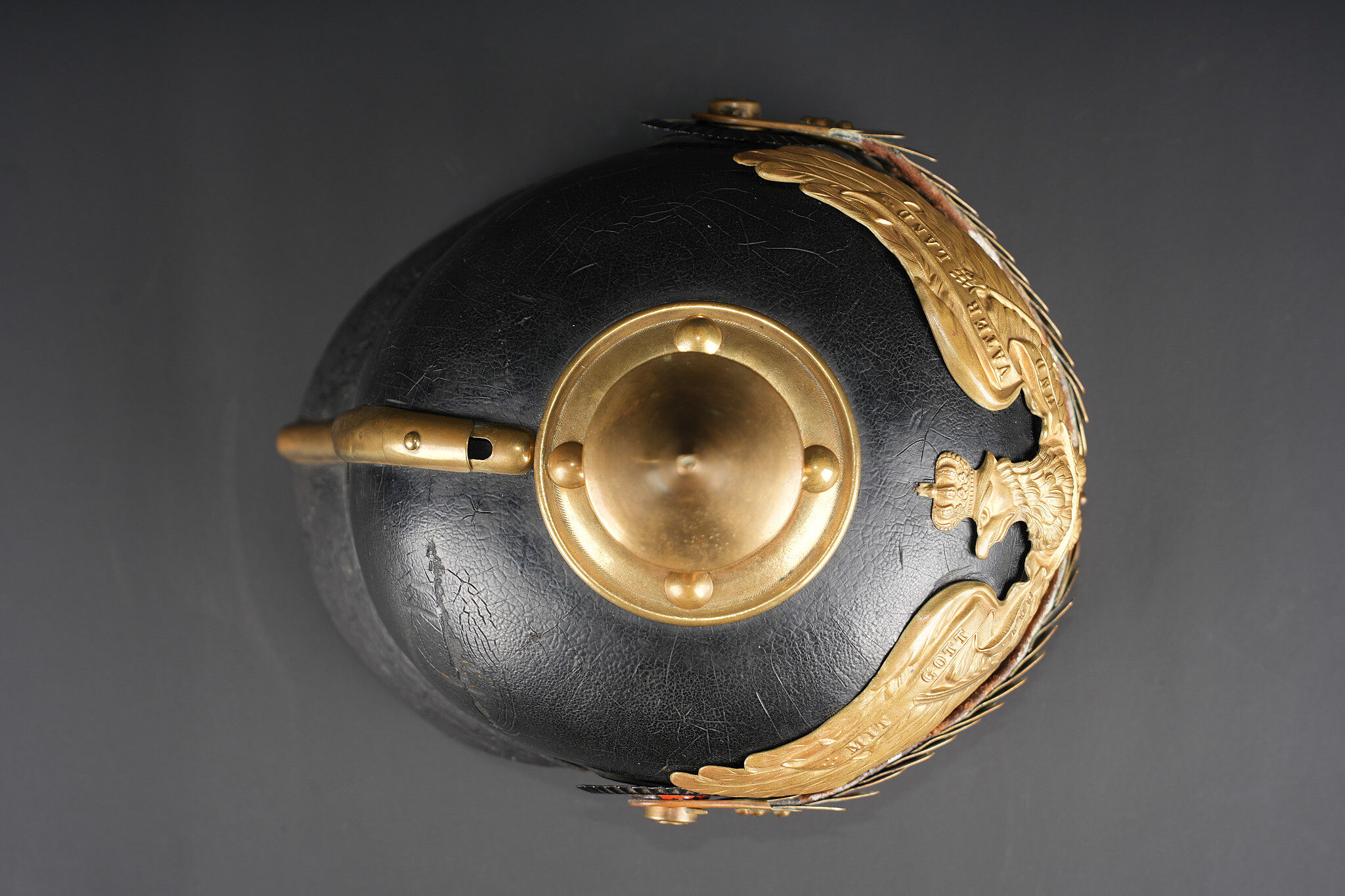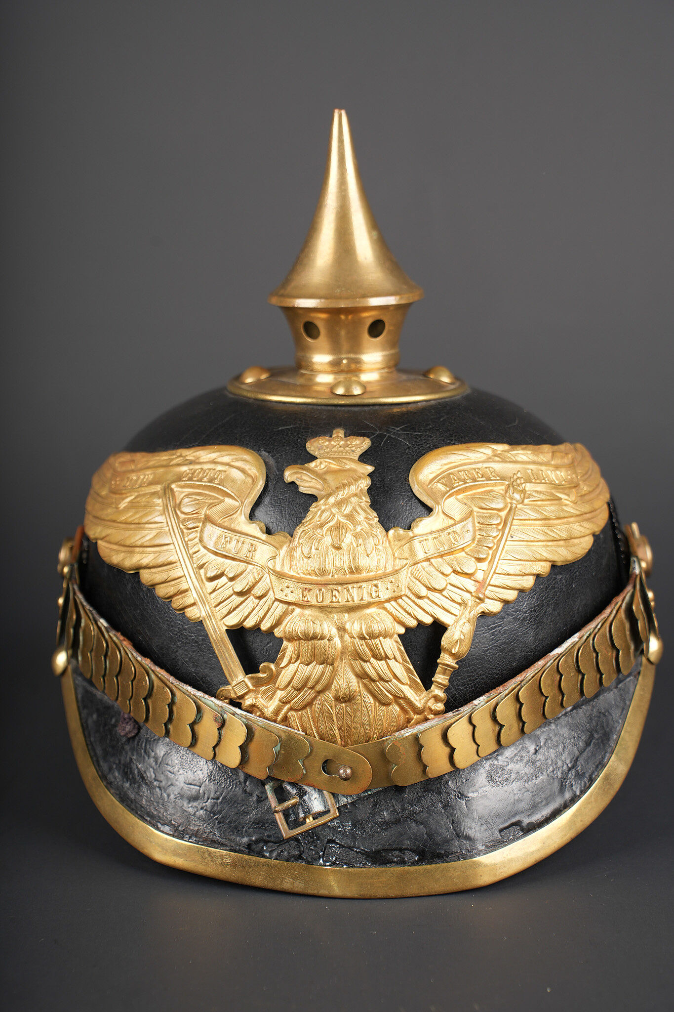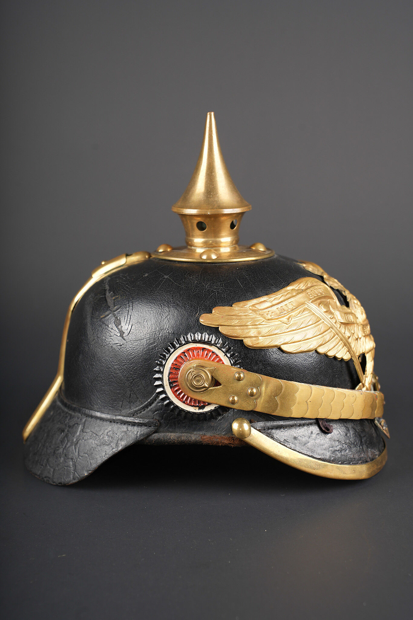 Casque à pointe M1895 du IIIe Bataillon du Leib Grenadier Regiment Nr 8. M1895 pickelhaube of the III Battalion, Leib-Grenadier Regiment Nr. 8