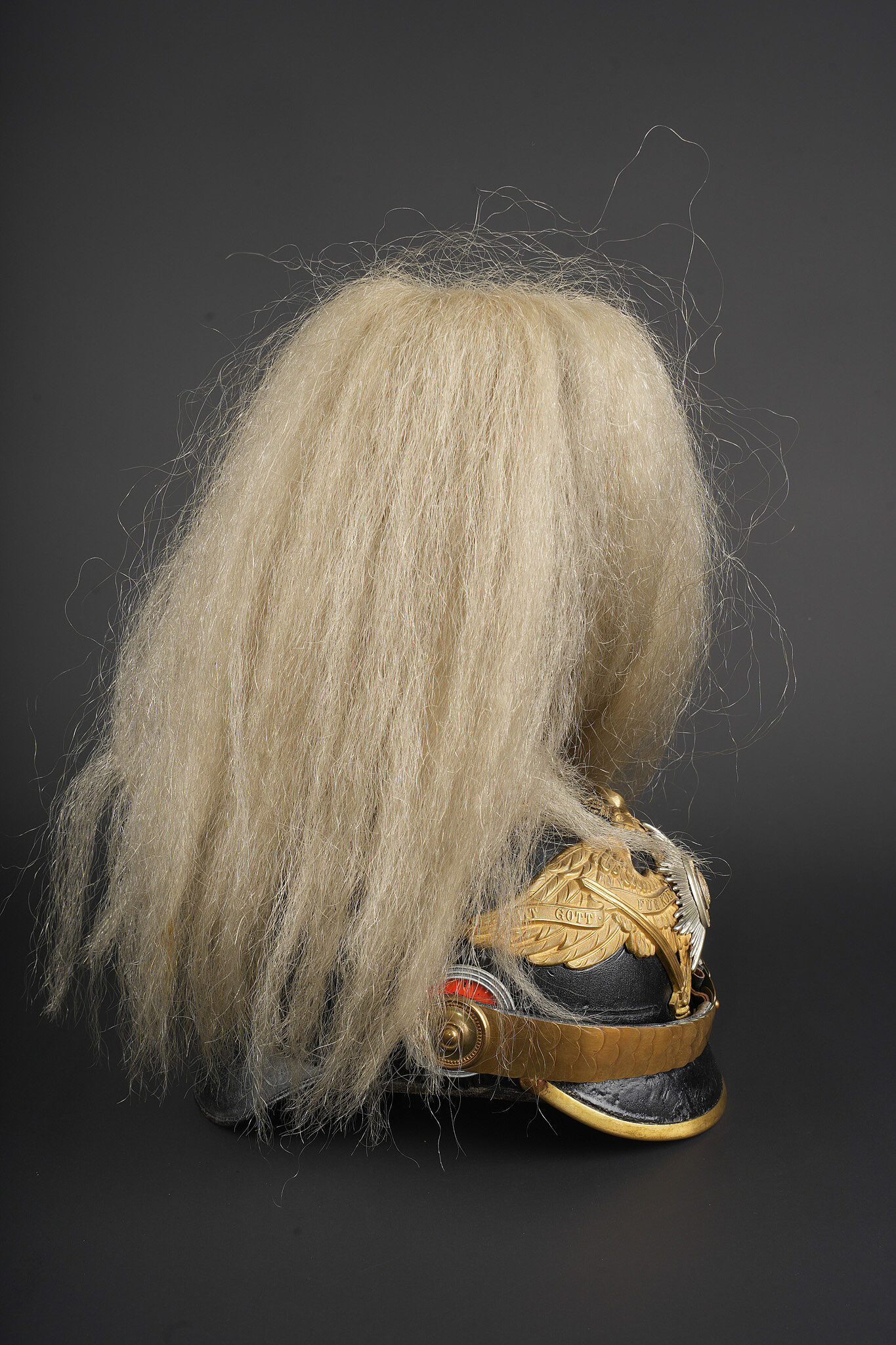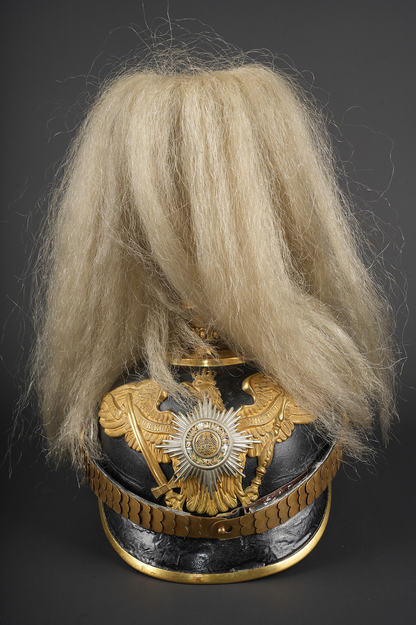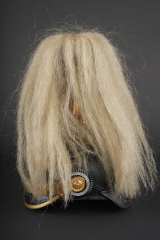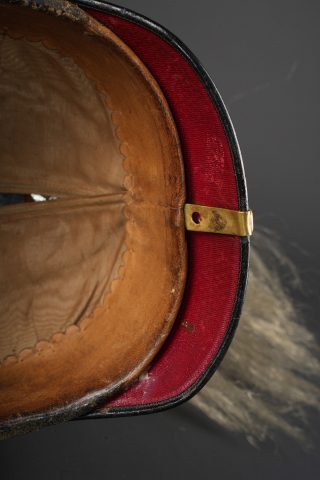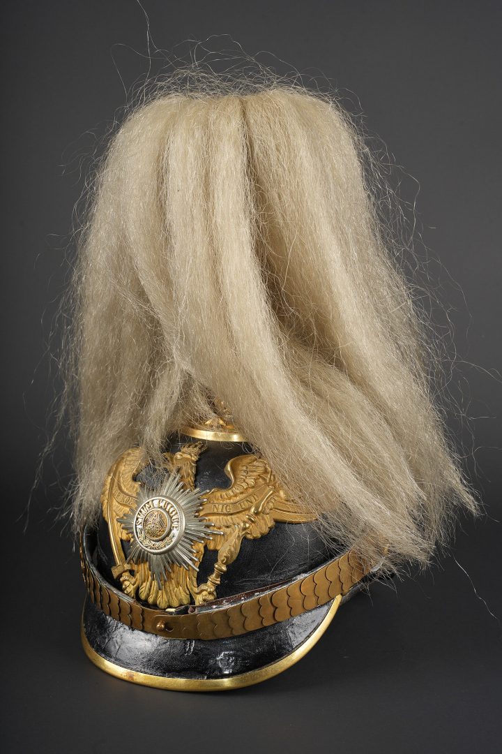 Casque prussien de l’un des régiments d’infanterie de la Garde à pied. Prussian helmet of one of the Foot Guards infantry regiments