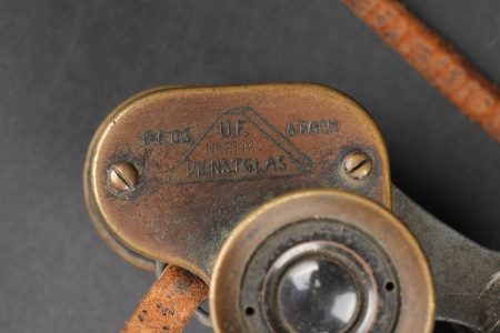 Détails de la vente >Ensemble allemand ww1 jumelles, carte et coupe papier artisanal. Une paire de jumelles DF03 règlementaires du fabricant Goerz, sanglon cuir présent, mollette absente, optique claire, usure... en savoir plus