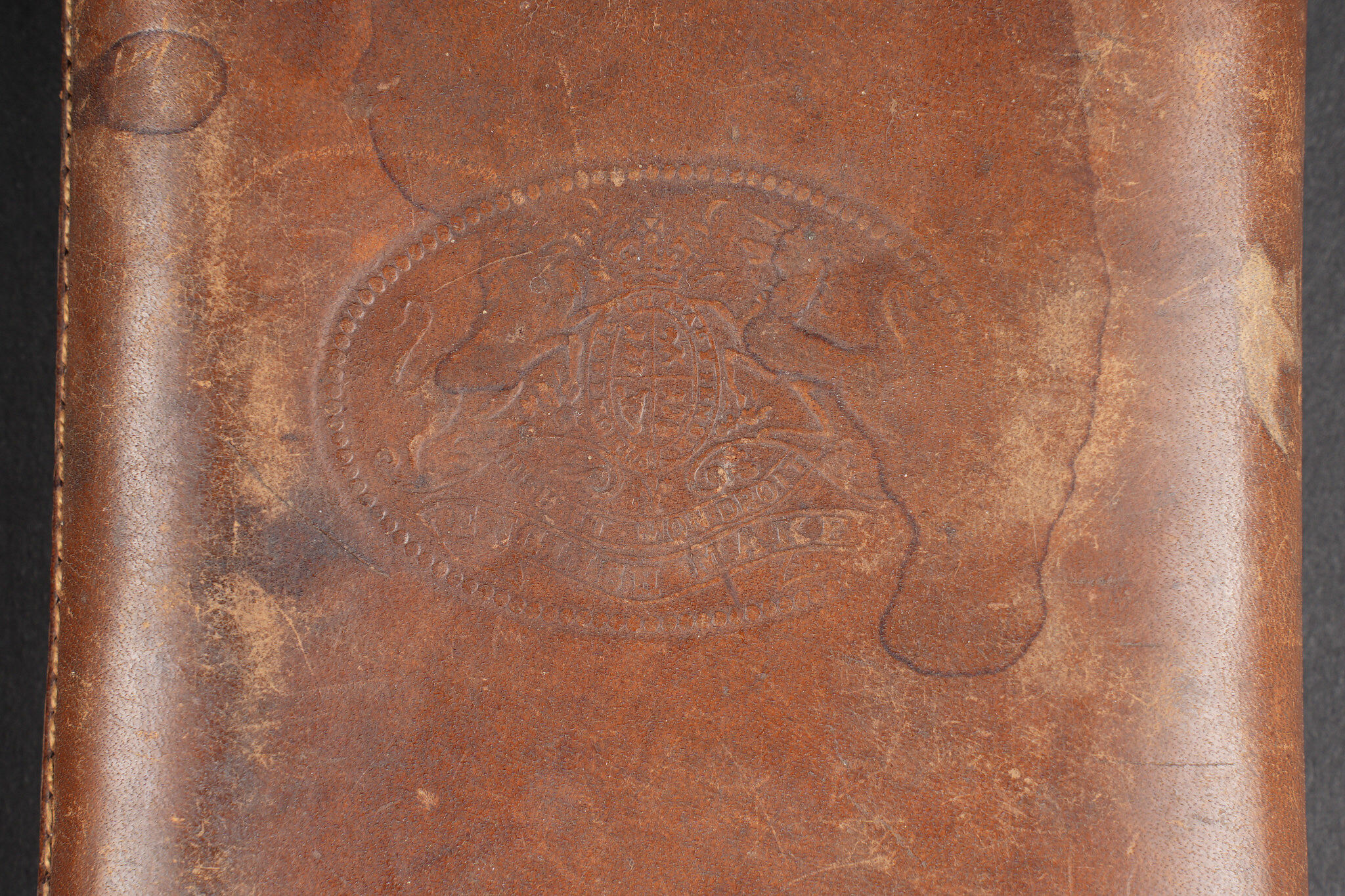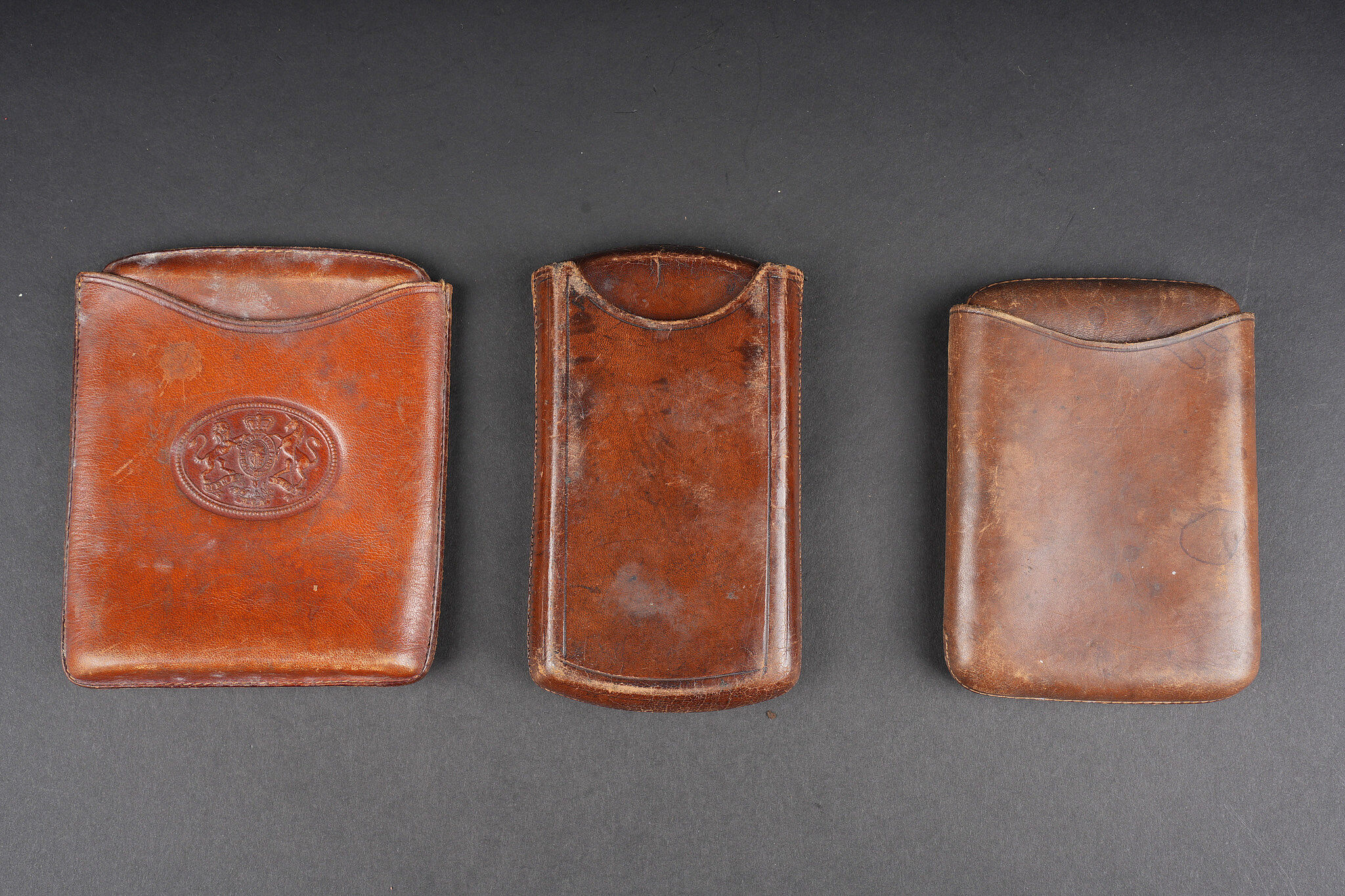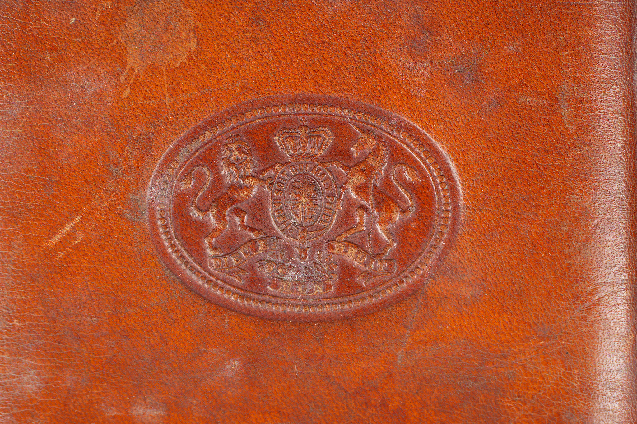 Lot d’objets d’officiers anglais ww1. Comprenant un portrait photo d’un officier anglais pris par le photographe belge Buyle. Le livre de compte du mess des officiers du 5e bataillon du Cheshire Regiment daté 1910. Un appareil photo Kodack Vest Pocket en mauvais état. 3 étuis à cigares anglais en cuir. 2 sont aux armes du Royaume, le 3e du fabricant Butler. Objets décoratifs tant pour collectionneur de militaria que du thème du tabac. Usure d’usage, patine. Lot of British WWI officer’s items including a photographic portrait of a British officer taken by the Belgian photographer Buyle, the officers’ mess account book of the 5th Battalion of the Cheshire Regiment dated 1910, a Kodak Vest Pocket camera in poor condition, and three English leather cigar cases, two bearing royal arms and one by Butler. Decorative pieces suited to both militaria and tobacco-related collecting, showing wear and patina.