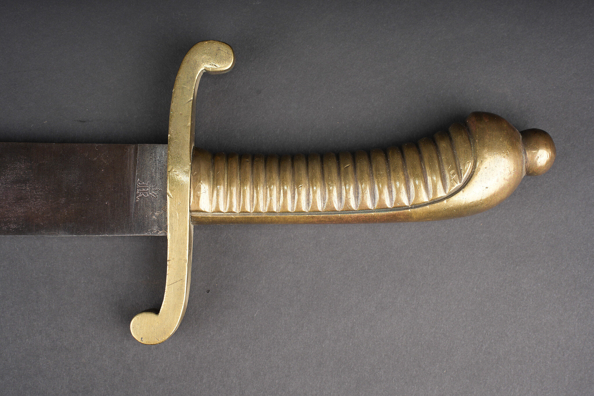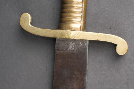 Détails de la vente >Glaive saxon M1845. Poignée laiton moulée, striée. Croisière réceptionnée au 103e Landwehr Regiment I Bataillon, barré puis réaffecté à un régiment de réserve. Lame à dos plat. Sans... en savoir plus