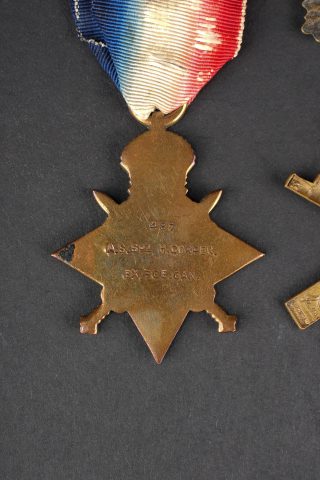 Canada ww1 médaille et insignes. Une 1914-15 Star attribuée à l’Acting Staff Serjeant Corper ASC Canadian Forestry Corps, un cap badge du 29th Battalion Tobin’s Tigers de Vancouver,... en savoir plus