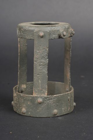 Détails de la vente >Lot artillerie allemande ww1 panier obus et visée. Un panier en osier pour 3 coups, avec son couvercle métal peint feldgrau, ses sangles. Usure d’usage. Une visée Rundblick Fernrohr 13,... en savoir plus