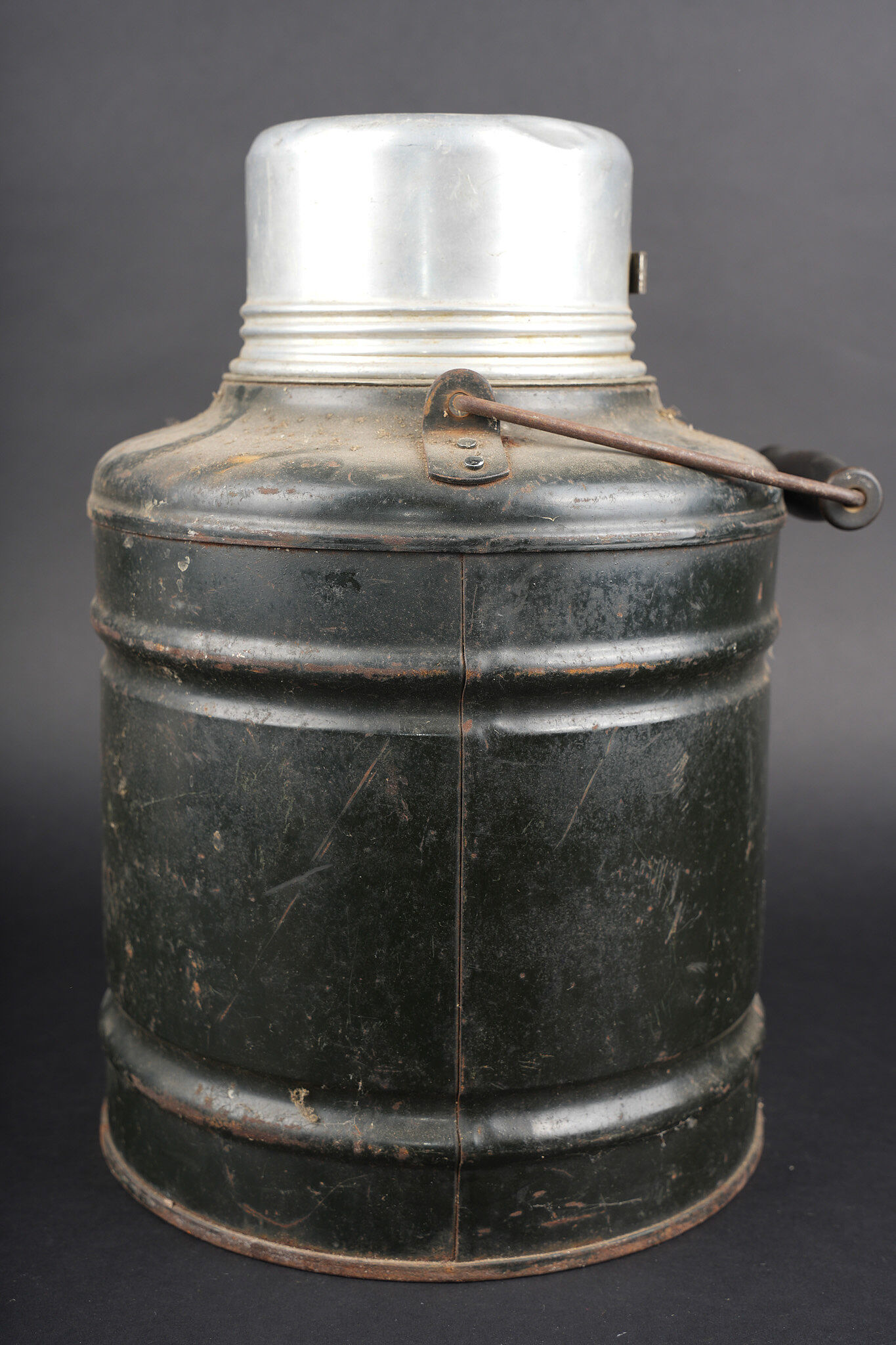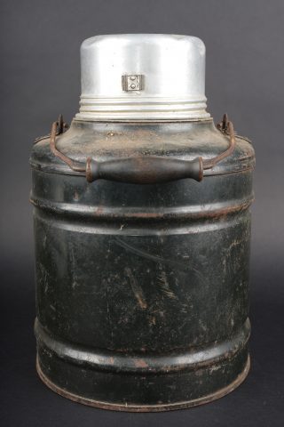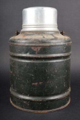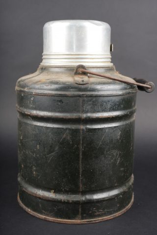 Détails de la vente >Lot de cuisine US ww1. Composé d’un thermos, intérieur en grès, enveloppe métallique marquée au dessous Universal Gallon Jug patented 1917. Une boîte à viande Model of 1916. Une... en savoir plus