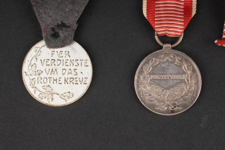 Détails de la vente >Lot de médailles Austro-Hongroises. 7 médailles dont Kriegsmedaille, médaille des blessés Laeso Militi, médaille de la Croix Rouge, médaille pour le courage Fortitudini, médaille du... en savoir plus
