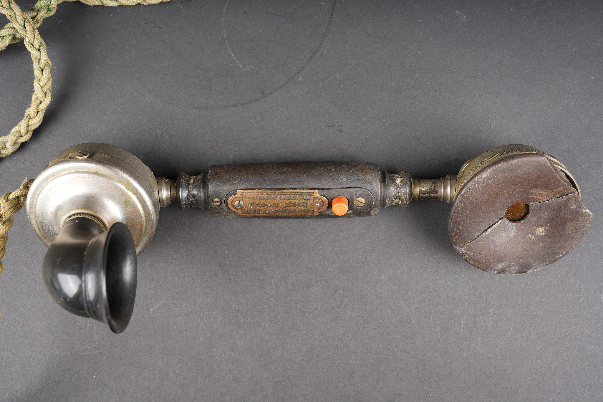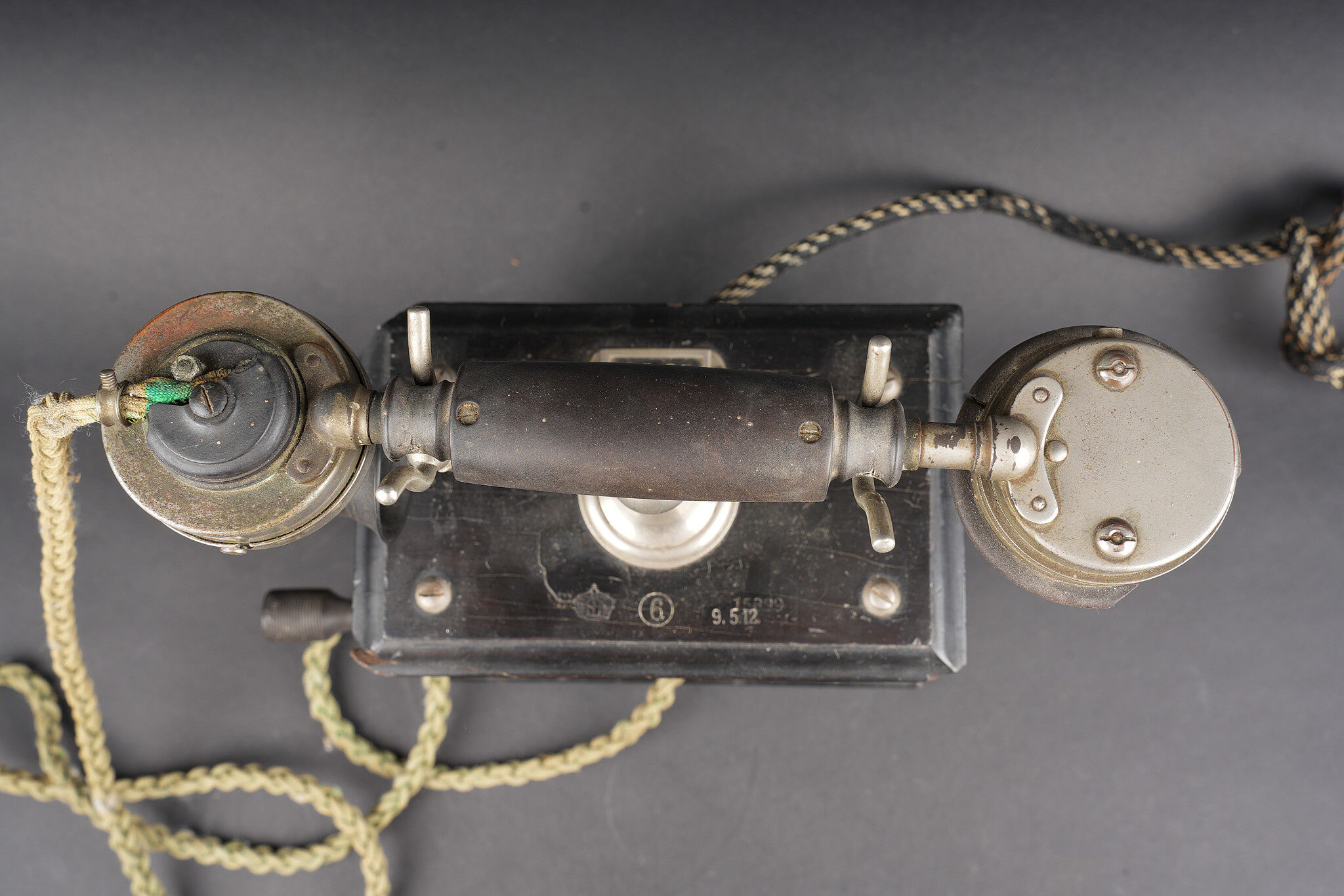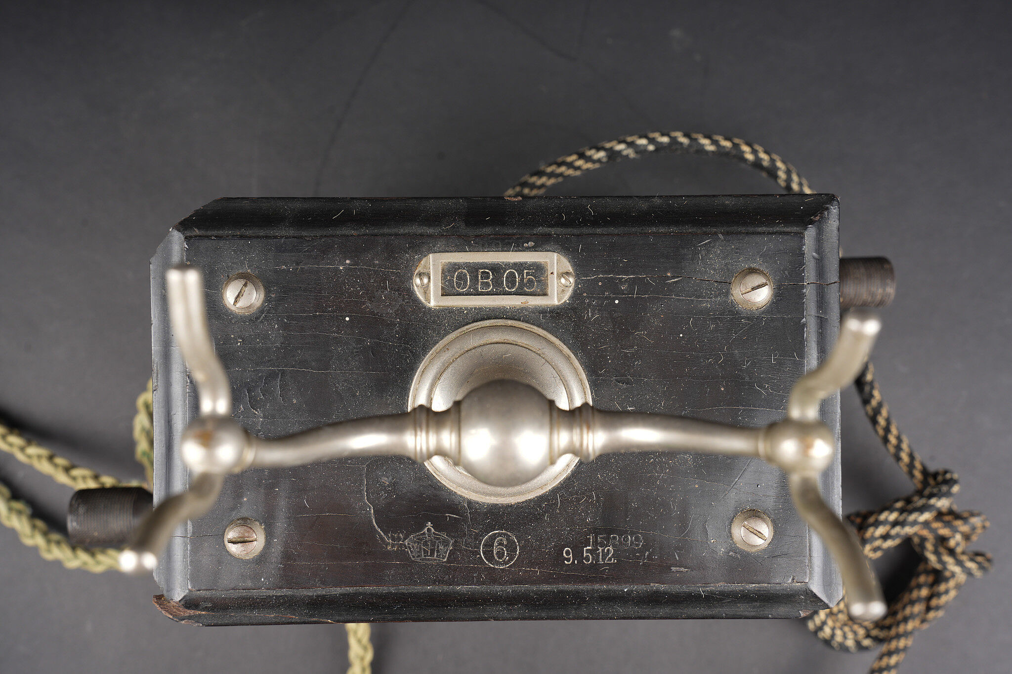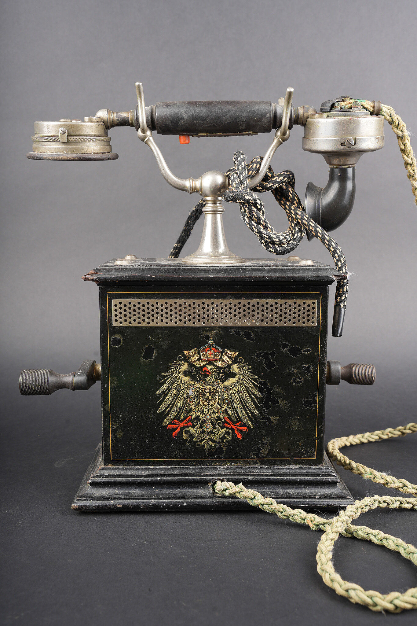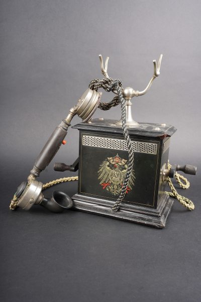 Détails de la vente >Téléphone allemand type OB05 de 1912. Très beau téléphone impérial allemand, de bureau, type OB05 année modèle 1905, daté 9.5.12 pour 1912. Avec de part et d’autre une aigle... en savoir plus