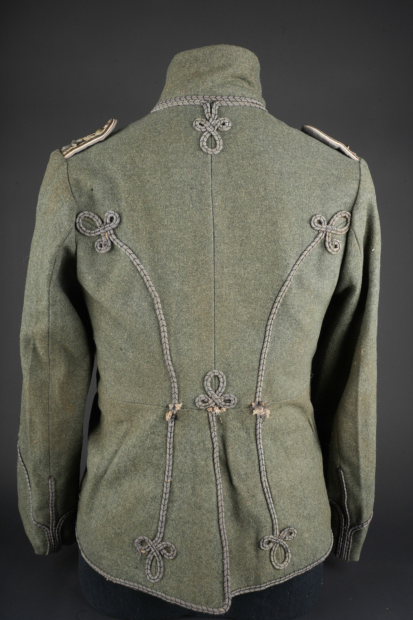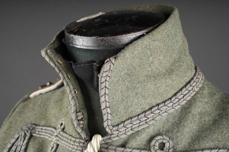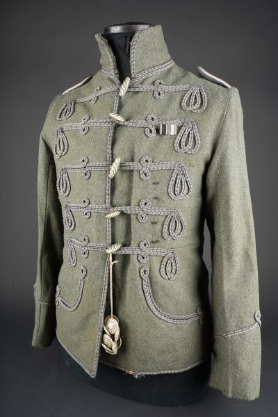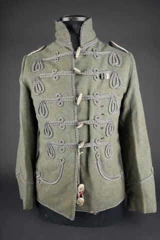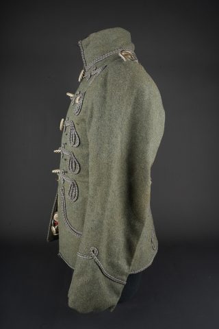 Tunique Attila feldgrau d’un officier d’aviation prussien. Attila feldgrau de hussard avec tresses et brandebourgs gris à liserés noirs. Col droit fermant par 3 crochets. Fermeture... en savoir plus