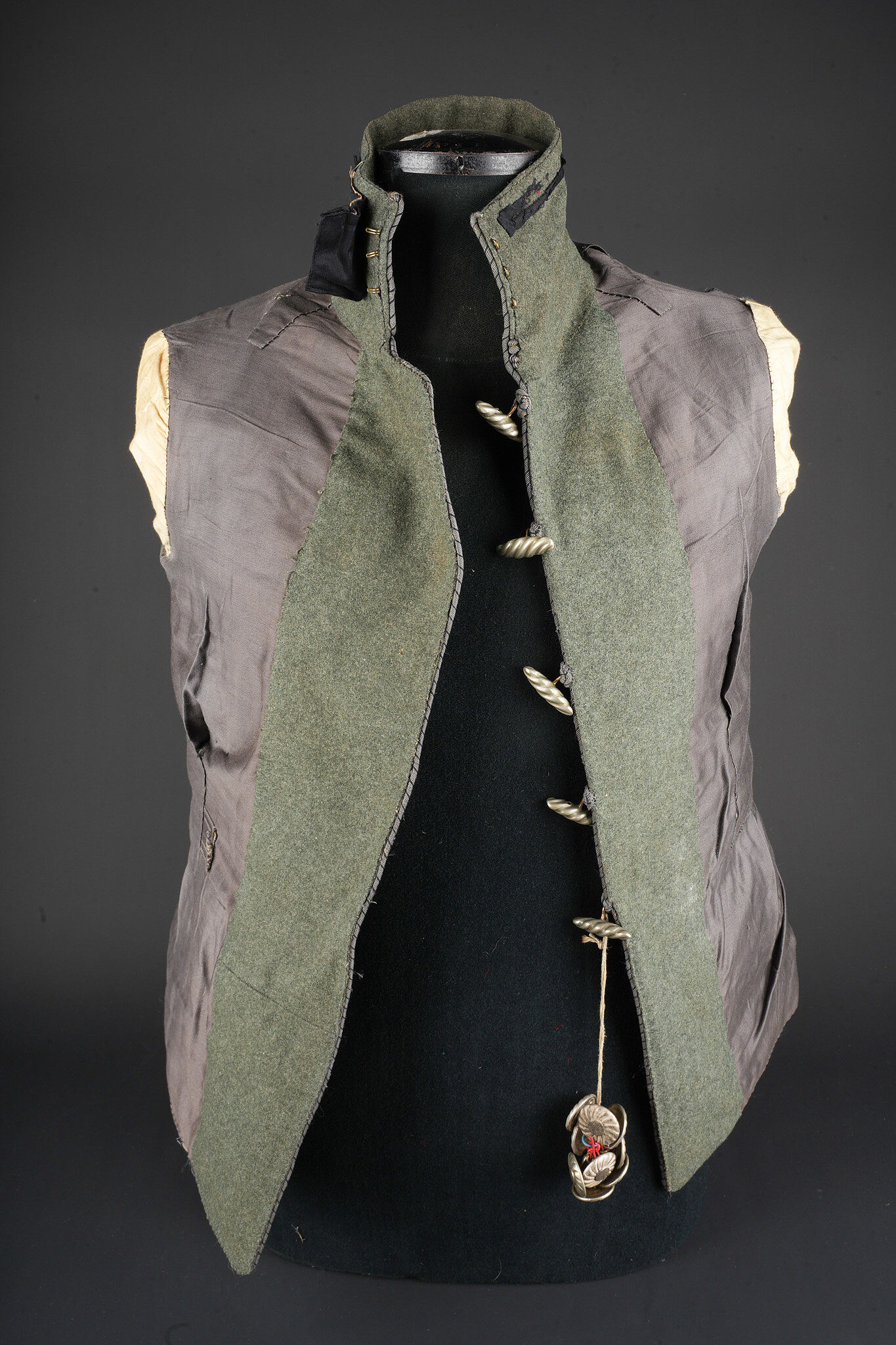 Détails de la vente >Tunique Attila feldgrau d’un officier d’aviation prussien. Attila feldgrau de hussard avec tresses et brandebourgs gris à liserés noirs. Col droit fermant par 3 crochets. Fermeture... en savoir plus