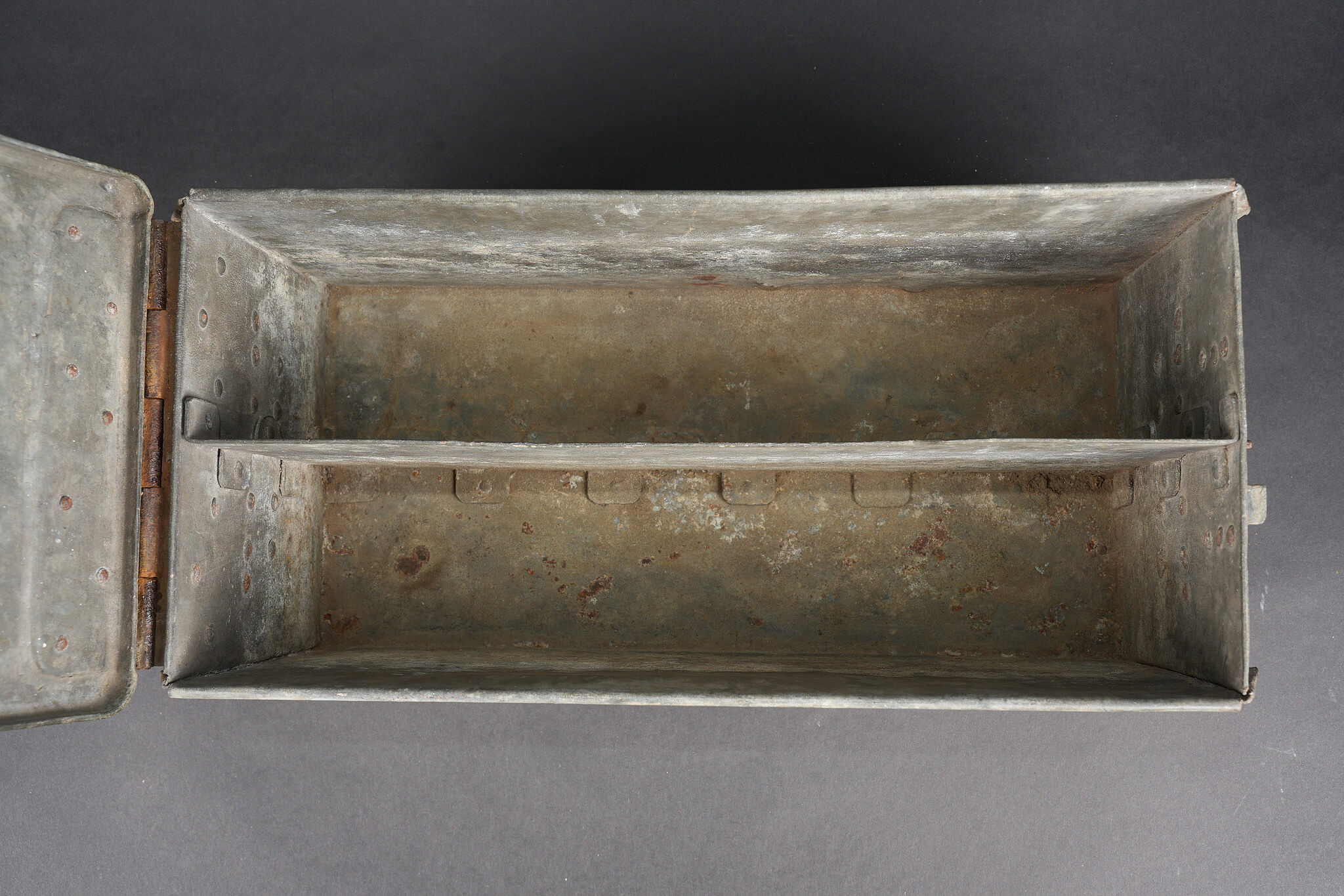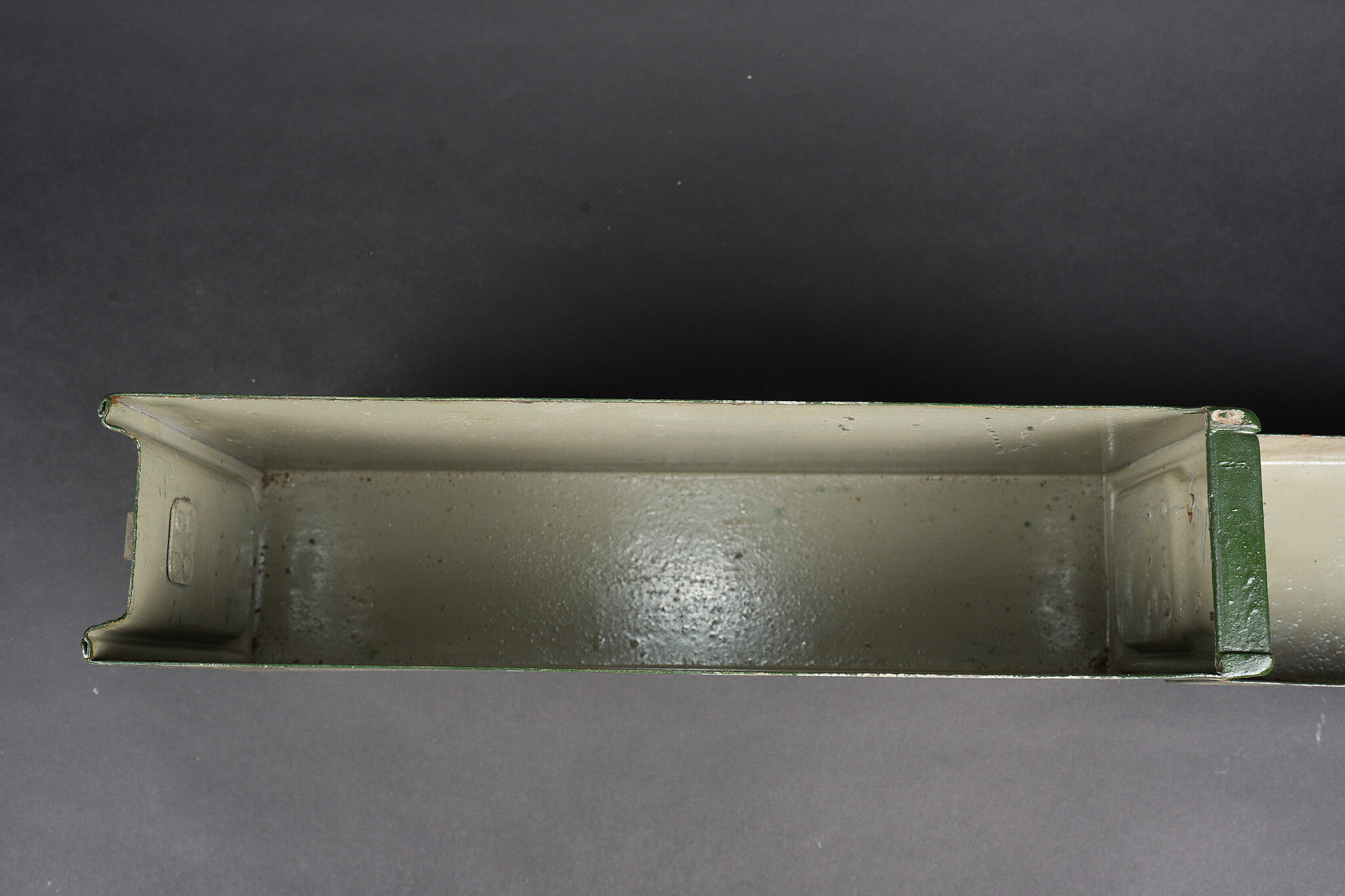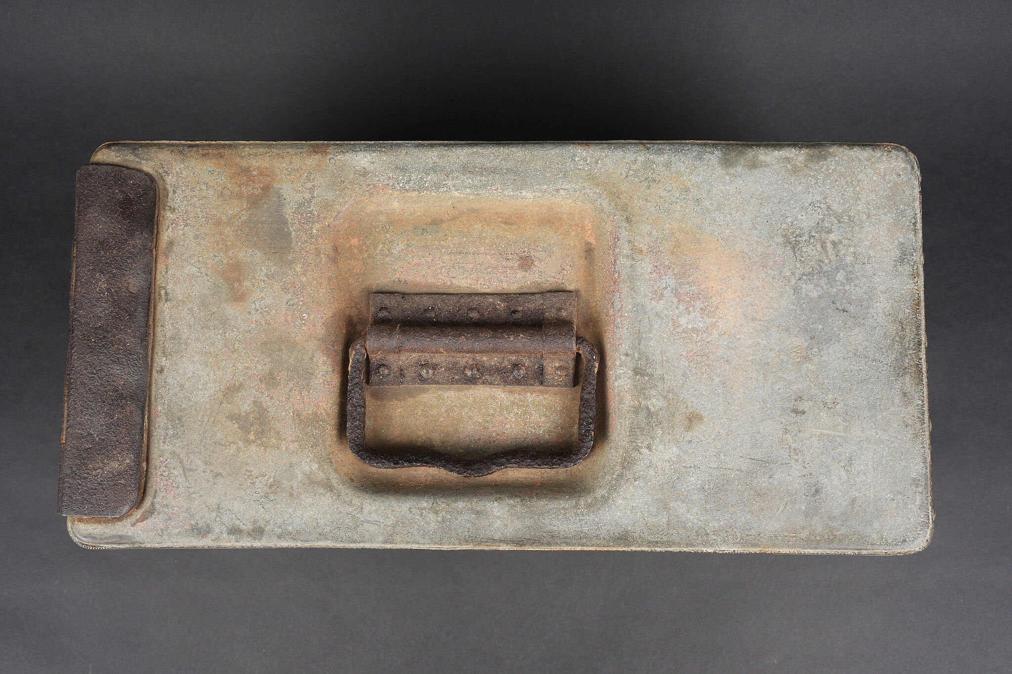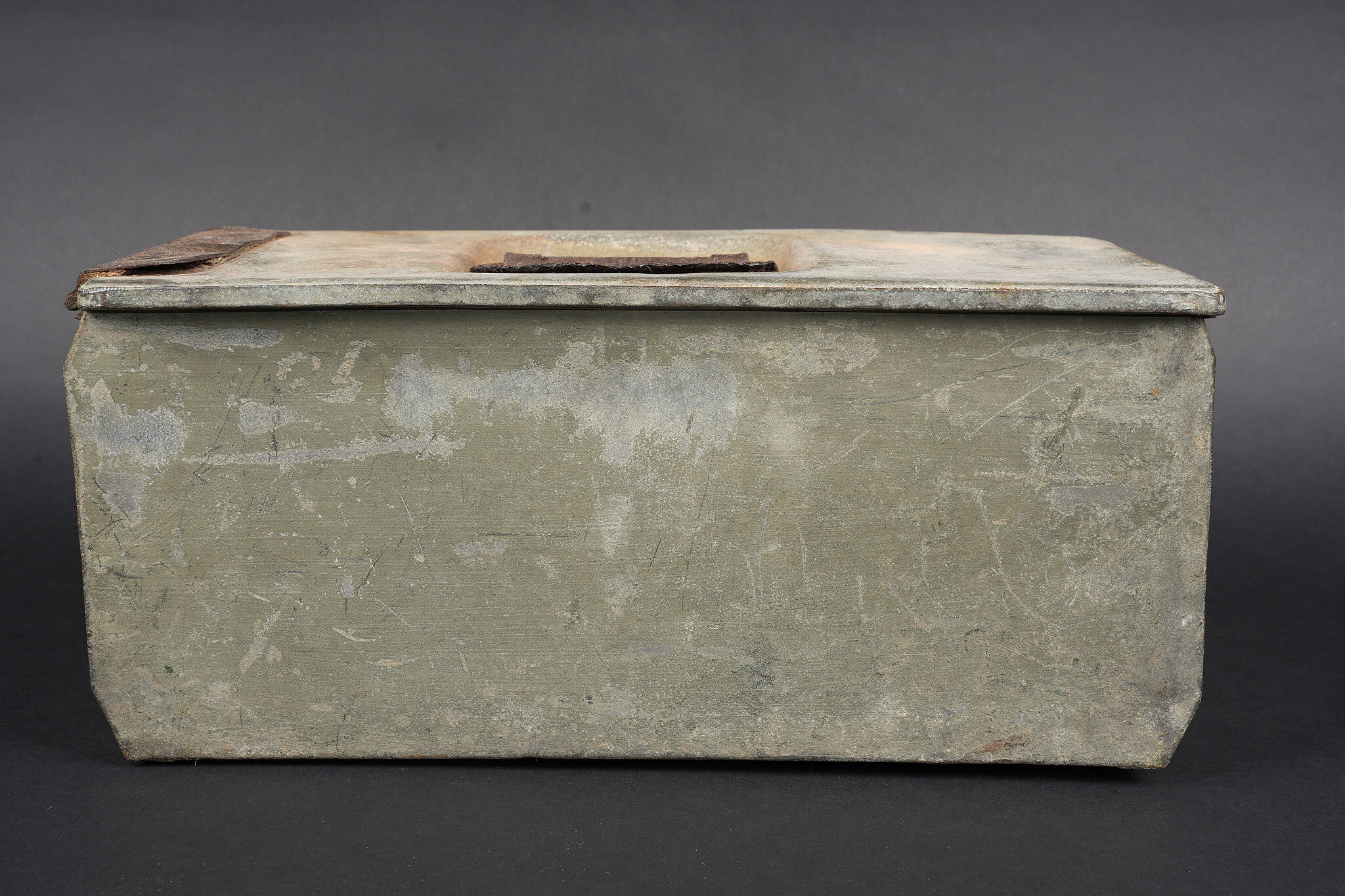 Clé et caisses pour munitions de mitrailleuse allemande ww1 MG08. Clé outil multifonction du 1er type en bel état. Caisse double, fermoir manquant. Caisse simple repeinte. Usure d’usage, patine. German MG08 ammunition tool set including one first pattern multifunction wrench in fine condition, one double ammunition box missing clasp, and one single box repainted. Service wear and patina.