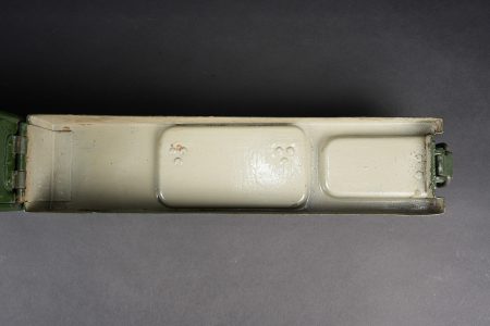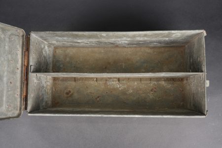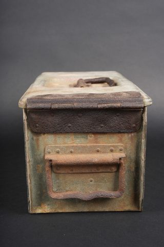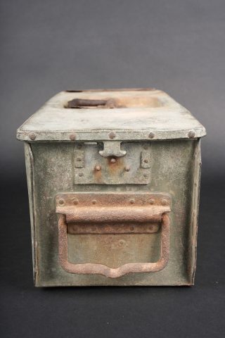 Détails de la vente >Clé et caisses pour munitions de mitrailleuse allemande ww1 MG08. Clé outil multifonction du 1er type en bel état. Caisse double, fermoir manquant. Caisse simple repeinte. Usure d’usage,... en savoir plus