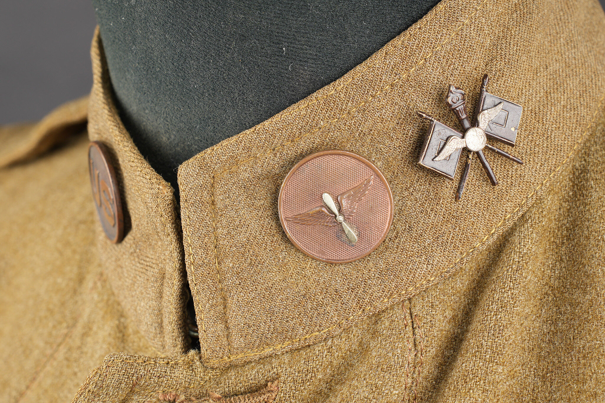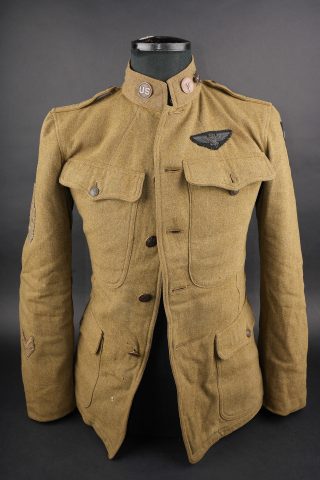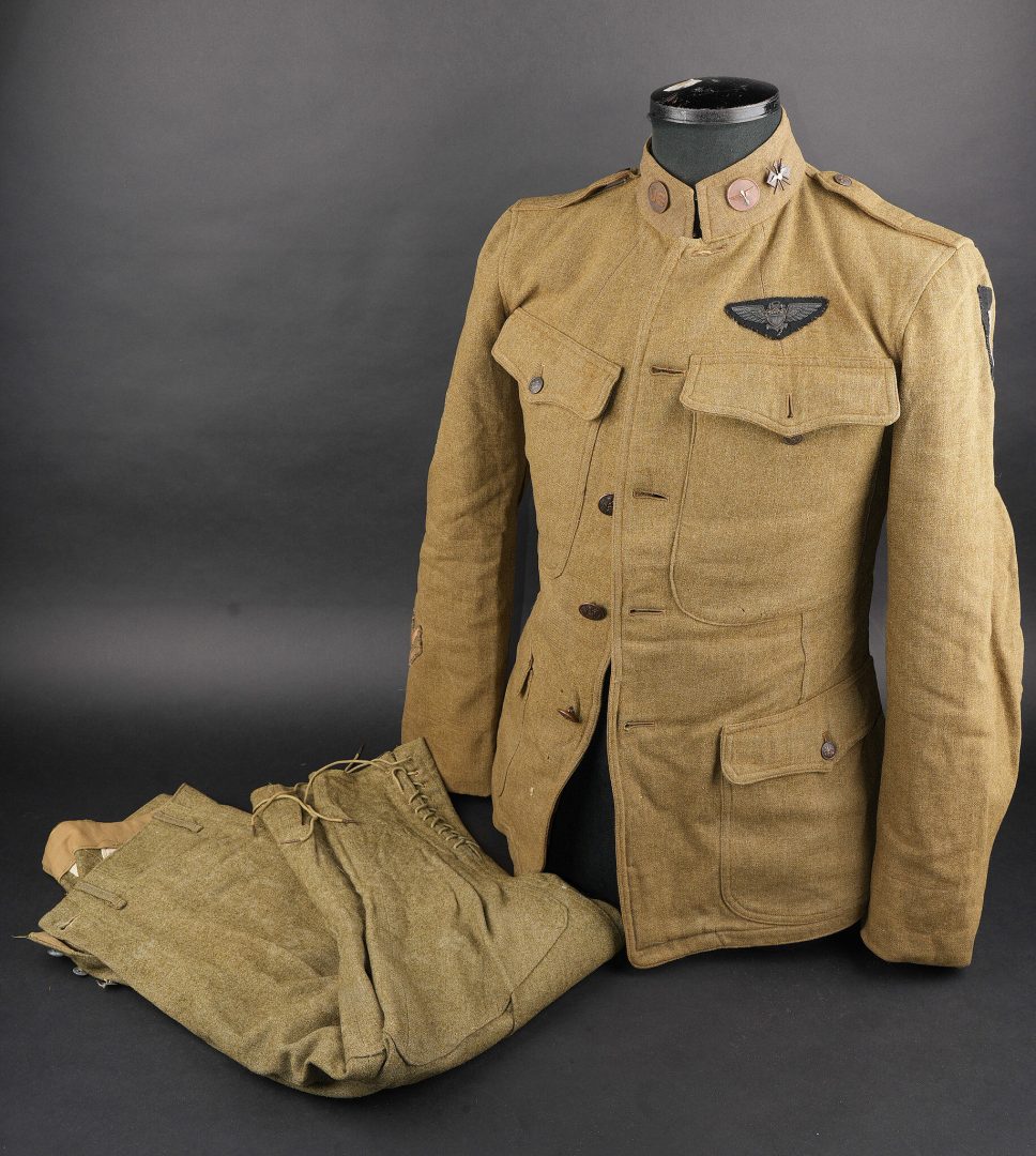 Détails de la vente >Uniforme US ww1 d’un aviateur du Air Service avec Navy Pilot Wings. Composé d’une vareuse modèle 1912 en drap léger. Etiquette sous la doublure du fabricant Sigmund Eisner, contrat... en savoir plus