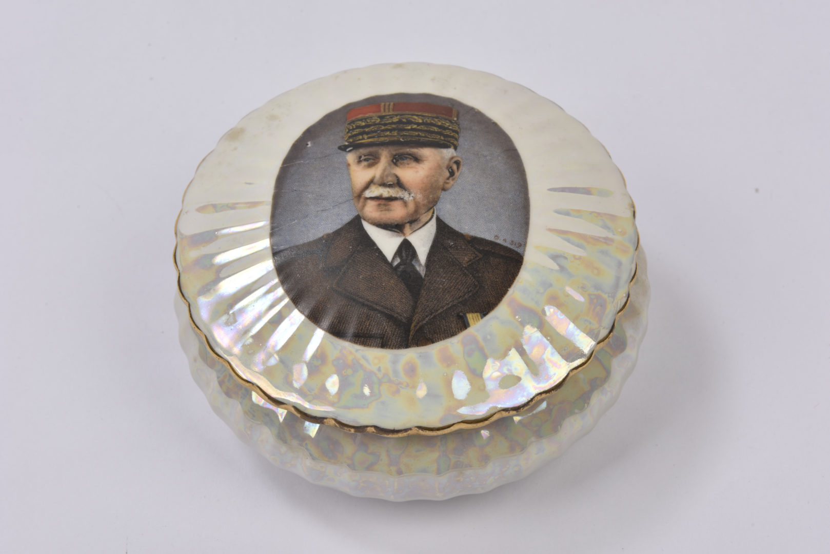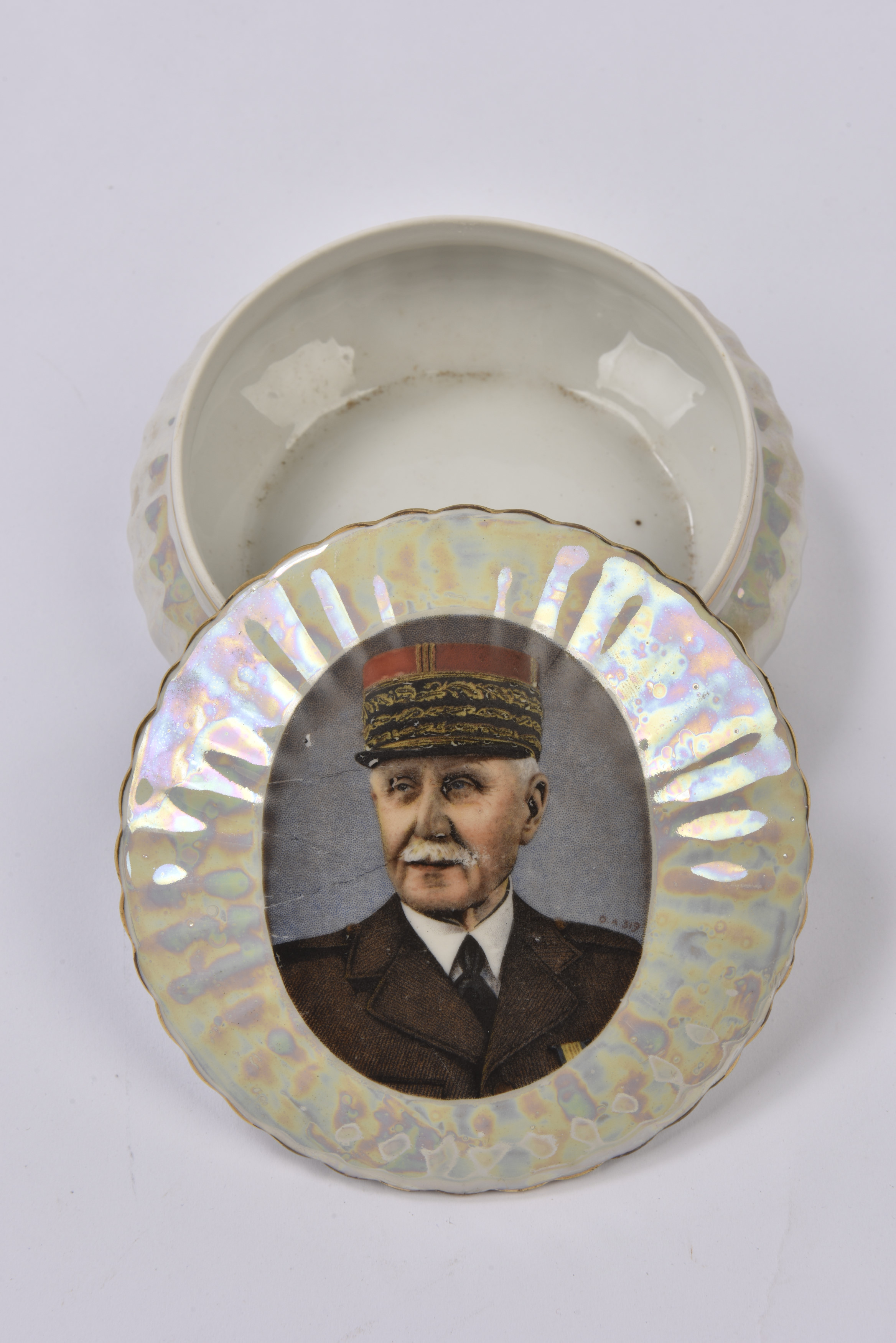 Figurant Pétain en buste et en couleurs (diamètre 13 cm) en porcelaine de Limoges