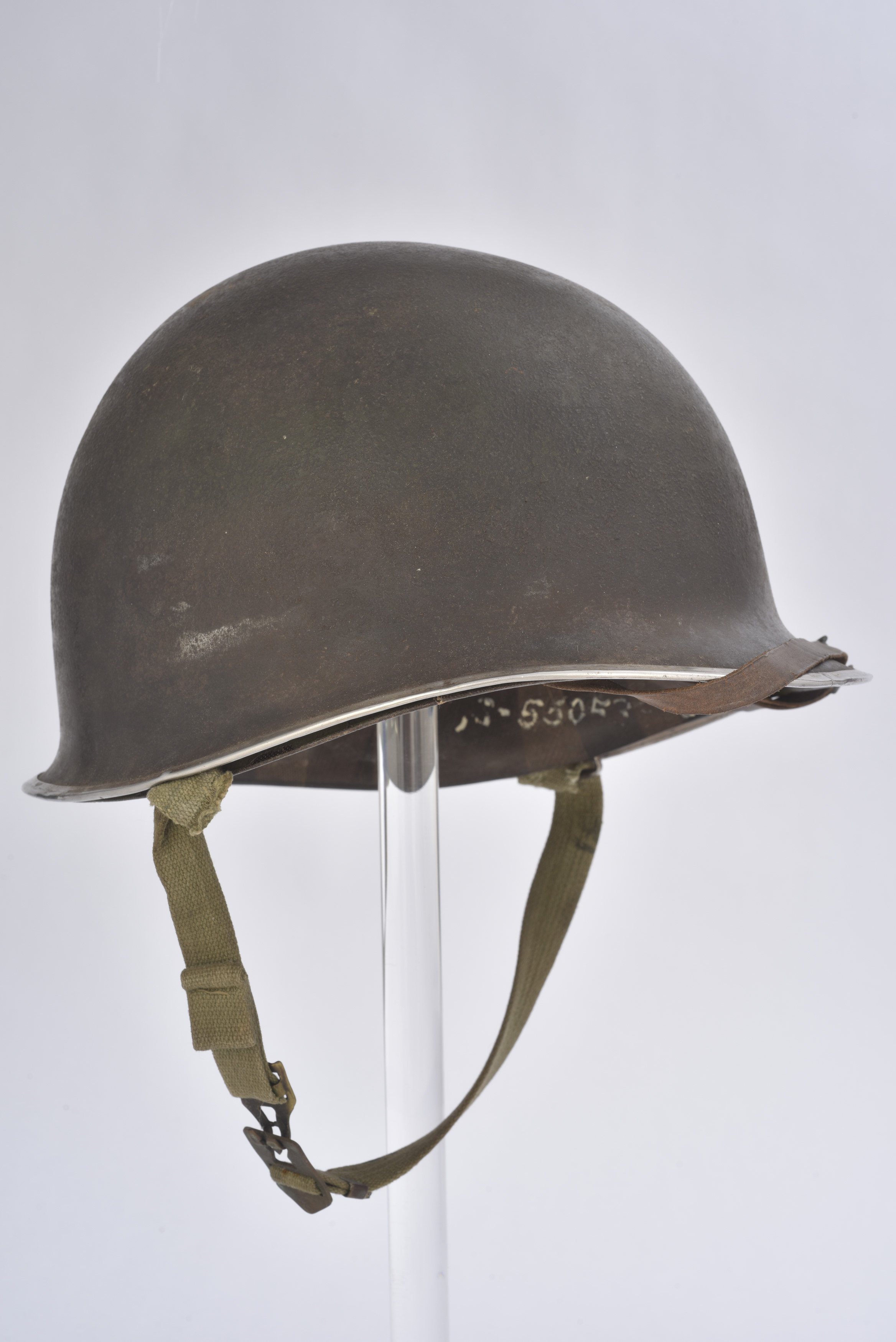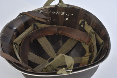 Coque de casque USM1, fermeture du jonc à l’avant, numéro de lot « 536C », pontet fixes, jugulaires décousues et non garanties. Peinture et cork à 70%, A noter quelques bosses sur le... en savoir plus