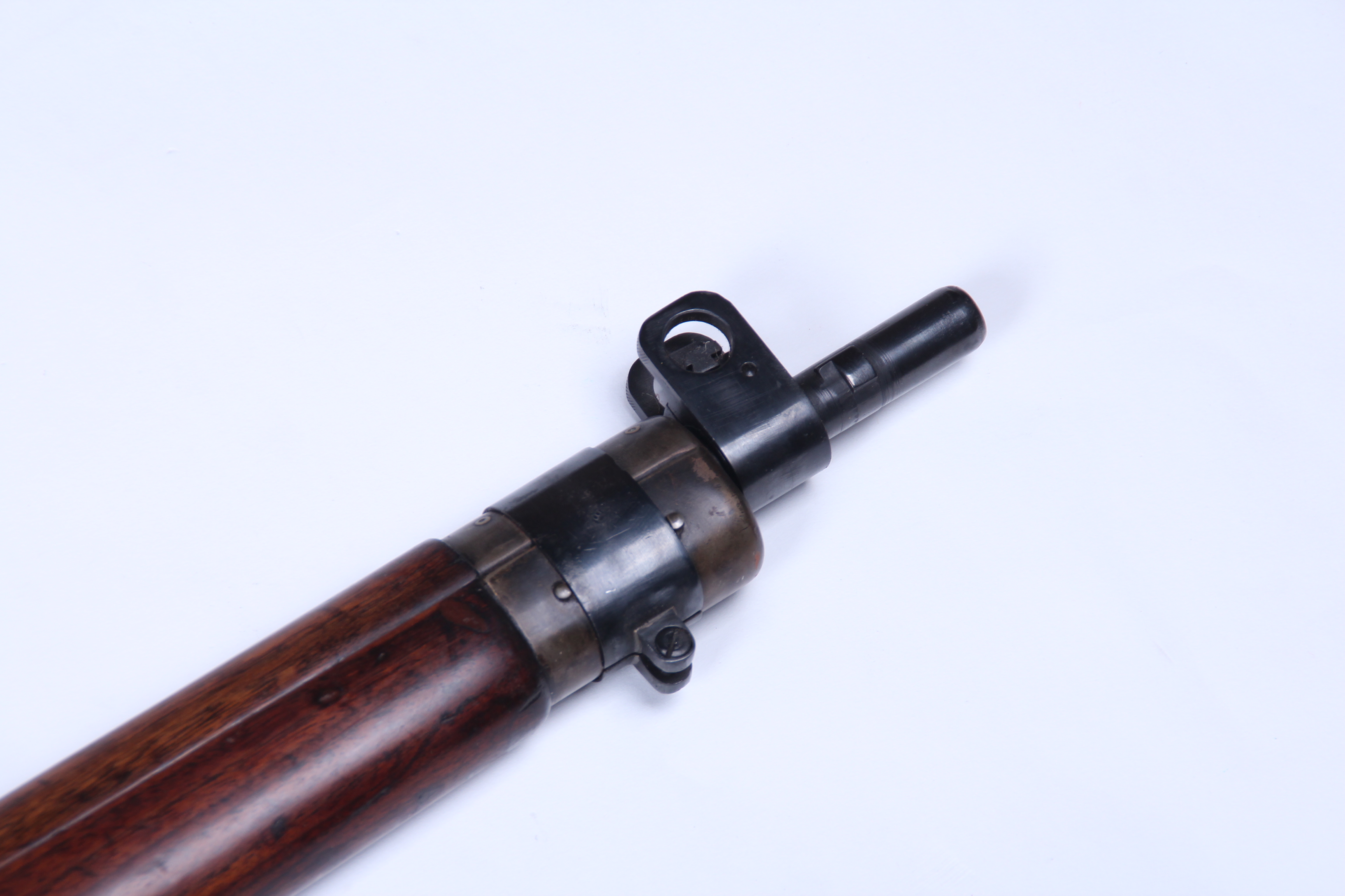 Calibre 303 british. Crosse bois. Marquages « N°4 MKI Long Branch 1943 ». Nombreux marquages sur l’ensemble de la pièce. Numéro « E12 ». Chargeur présent. Bronzage à 80%... en savoir plus