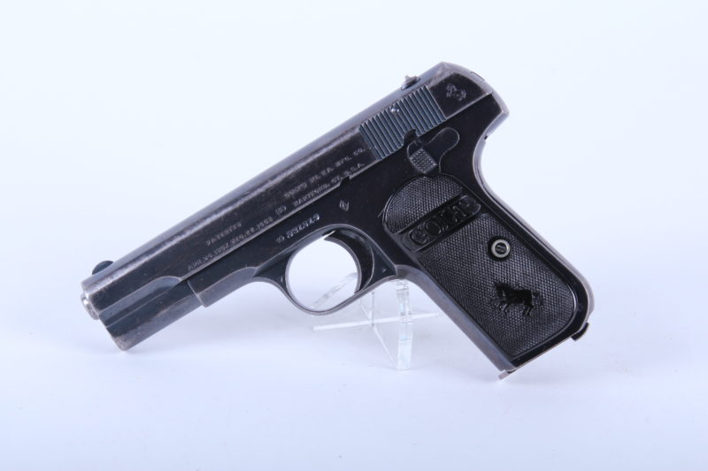 Calibre 7,65 mm ou 32 Rimless Smokeless. Marquages « Colt’s PT FA MFG CO Hartford CT USA ». Plaquettes en matières plastique noire marquées « Colt ». Chargeur présent. A noter quelques légères marques d’usures et d’oxydation sur l’ensemble de la pièce. Numéro « 231219 ». Le fonctionnement de l’arme n’est pas garanti. Arme délivrée aux détenteurs d’une autorisation de catégorie B. Pour les personnes non détentrices de cette catégorie il sera impératif de faire neutraliser l’arme par nos soins exclusivement, aux frais de l’acheteur suivant les nouvelles normes européennes du Banc d’Epreuve de Saint Etienne.