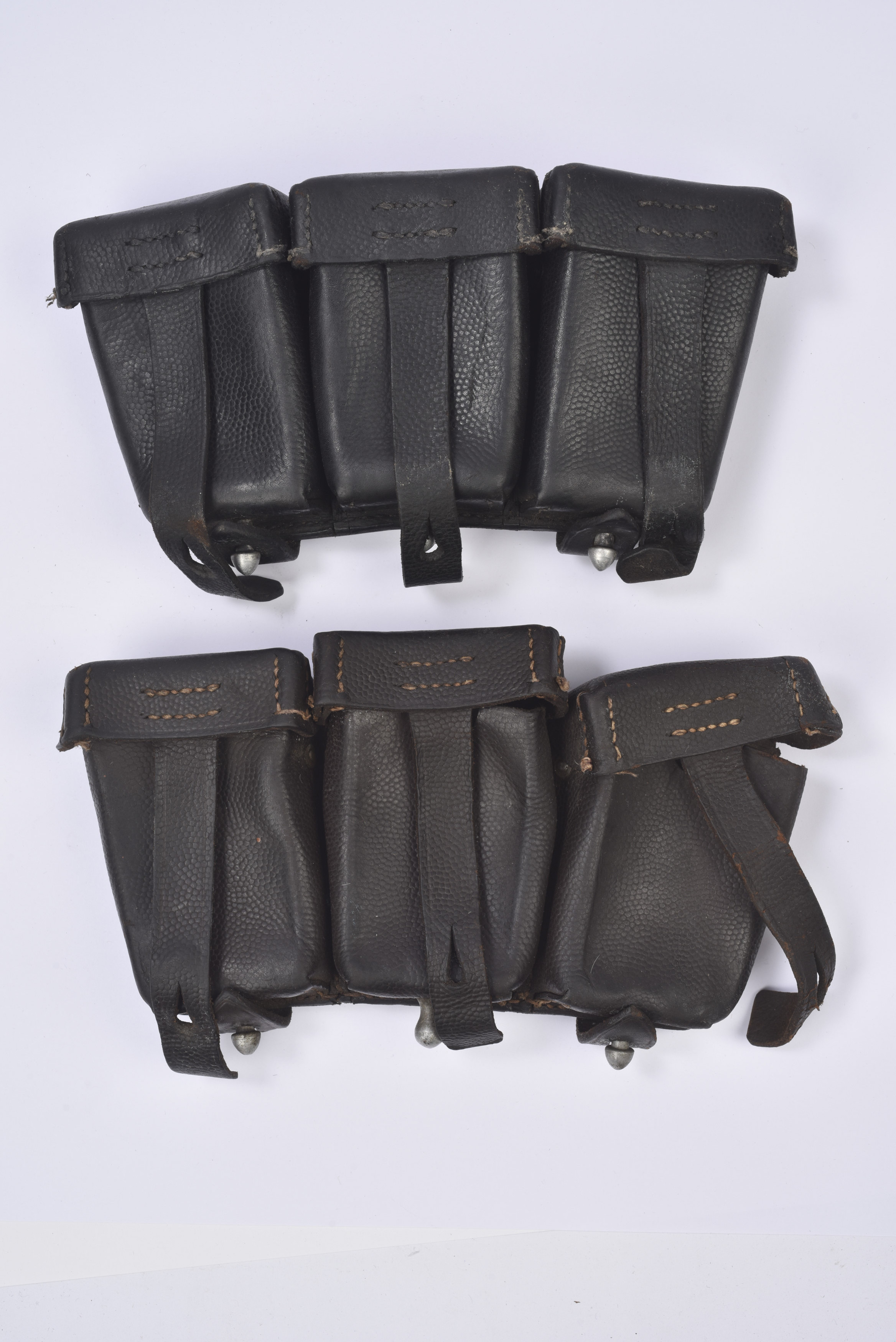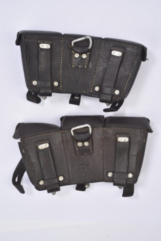 Une cartouchière en cuir noir, de fabrication « Hohmann & Sohn 1938 ». Une cartouchière en cuir noir, datée 1938. Paire non homogène dans leur état. A noter quelques marques d’usures sur l’ensemble des pièces