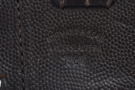 Une cartouchière en cuir noir, de fabrication « Hohmann & Sohn 1938 ». Une cartouchière en cuir noir, datée 1938. Paire non homogène dans leur état. A noter quelques marques d’usures... en savoir plus