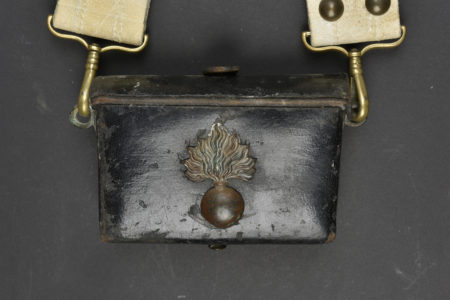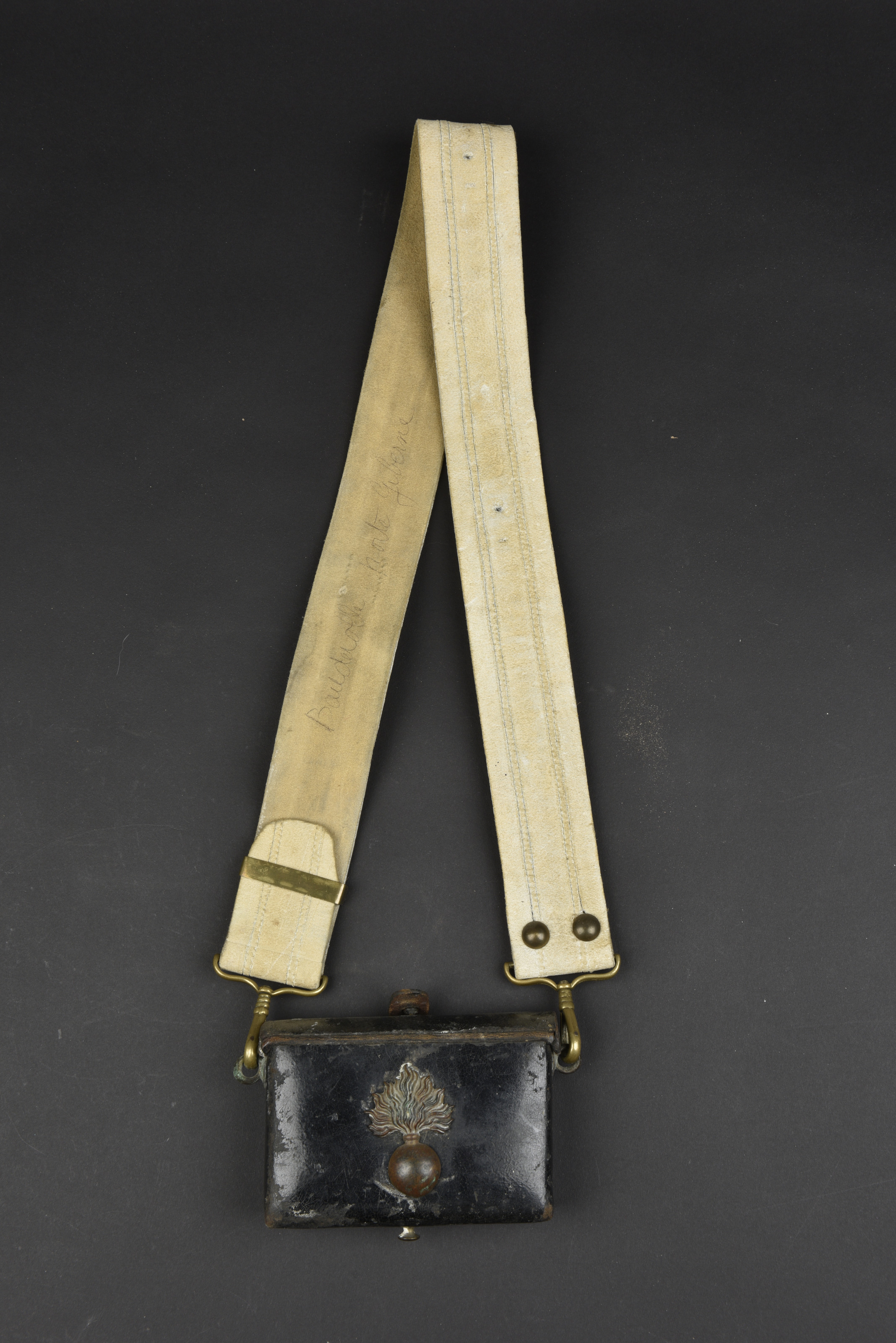 Porte-giberne en buffle blanc piqué (manquent tête de lion et écusson) des modèles 1889, cavalerie de la Garde républicaine.
