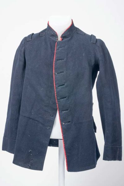 Veste en drap bleu foncé à passepoil écarlate,