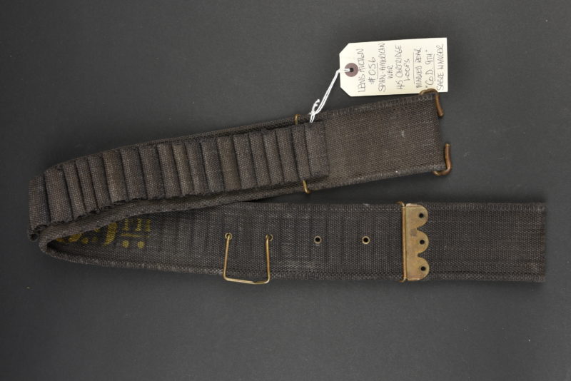 En forte toile bleue, nombreux compartiments pour munitions. Bouclerie en laiton. Fabrication Mills & Orndorff. Indicatin régimentaire COD 9th 4. Porte sabre présent. A noter une légère... en savoir plus
