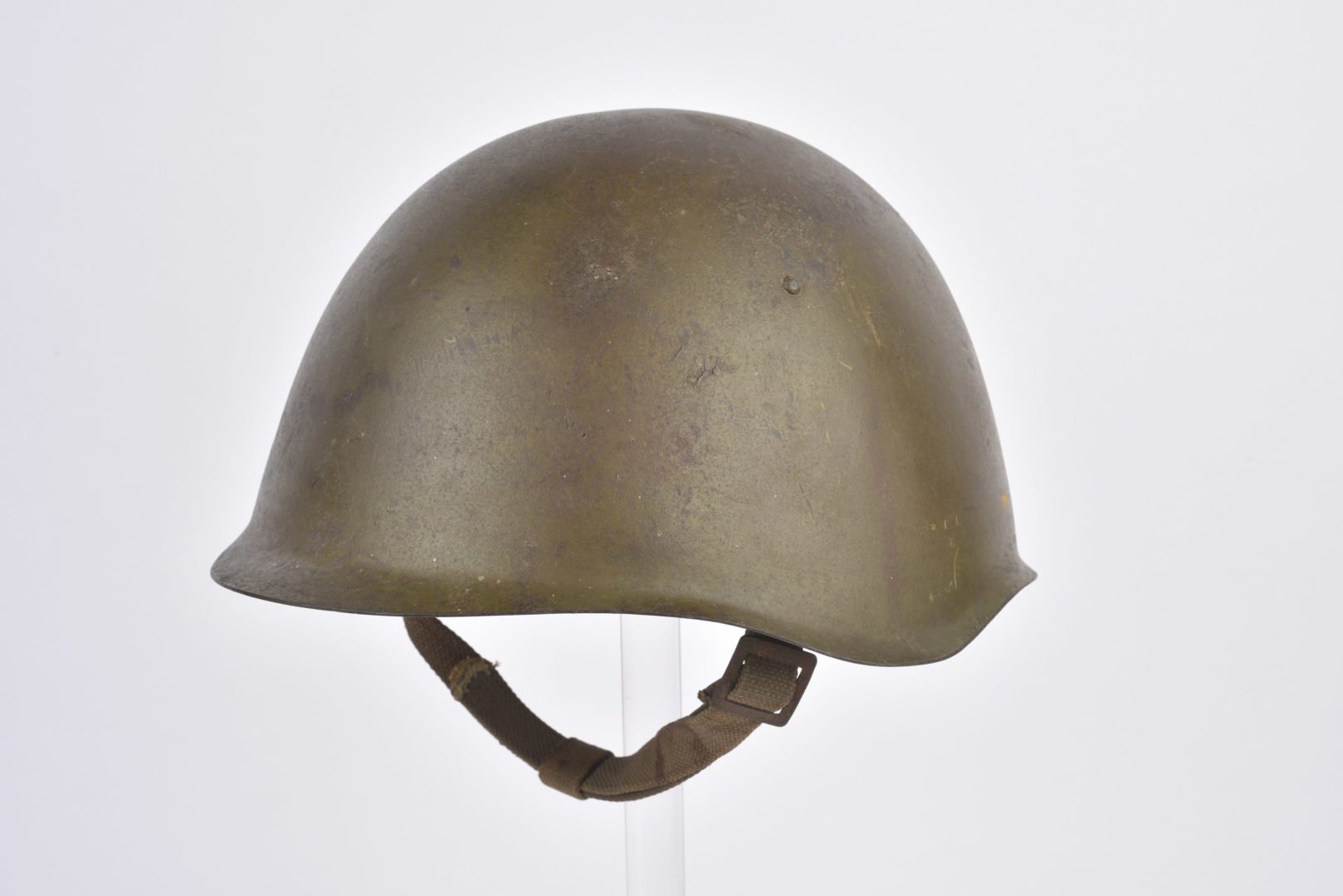 Intérieur circulaire en toile, complet, bon état. Exemplaire daté 1940, fabrication de l’usine Métallurgique de Lysva, taille 2 (58). Helmet Ssh.39, circular interior in canvas, complete, good condition. dated 1940, manufacture of the Lysva Metallurgical Plant, size 2 (58). Cette pièce provient de la collection Philippe Rio. Son livre paru en 2011, le soldat soviétique est devenu une référence absolue dans le thème. Ses pièces proviennent majoritairement du terrain.