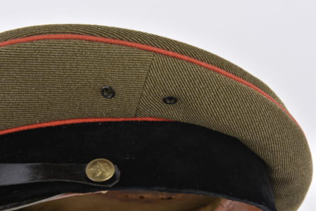 Bandeau velours noir et passepoil rouge, taille 57, fabrication allemande avec œillets d’aération. M.35 Cap Artillery, black velvet headband and red piping, size 57, made in Germany with... en savoir plus