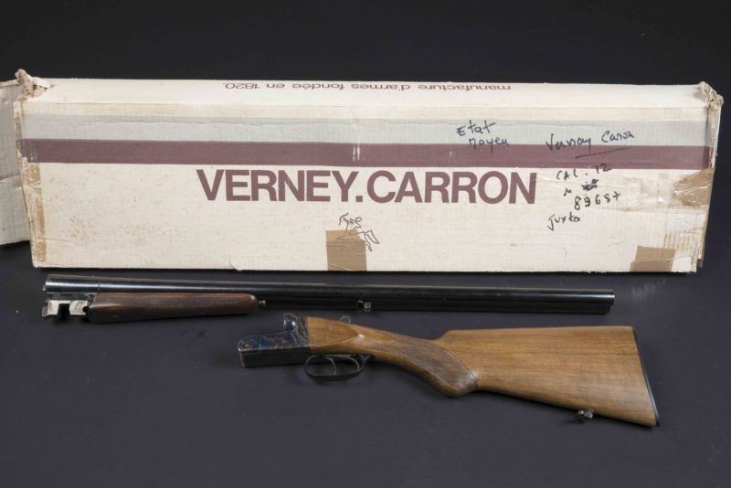 Modèle Pionnier, numéro 89687. Canon Verney Carron. Calibre 12. Carton non du modèle de l’arme. Provenant des anciens stocks de l’armurerie Angot fermée en 1991. Arme délivrée aux détenteurs d’une licence de tir ou d’un permis de chasse et à déclarer en Préfecture. Pour les personnes non détentrices de cette catégorie il sera impératif de faire neutraliser l’arme par nos soins exclusivement, aux frais de l’acheteur suivant les nouvelles normes européennes du Banc d’Epreuve de Saint Etienne. Fonctionnement de l’arme non garantie.