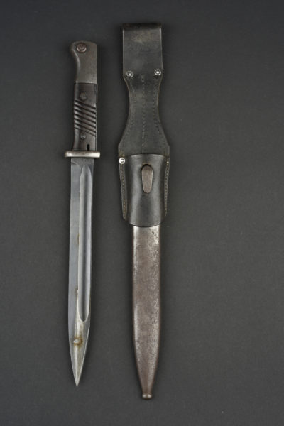 Plaquette en bakélite, fourreau portant le numéro 2023. Lame dans son bronzage d’origine, numéro 827 O, fabrication Eu Hörster. Gousset en cuir complet, daté 1939. A noter une certaine... en savoir plus