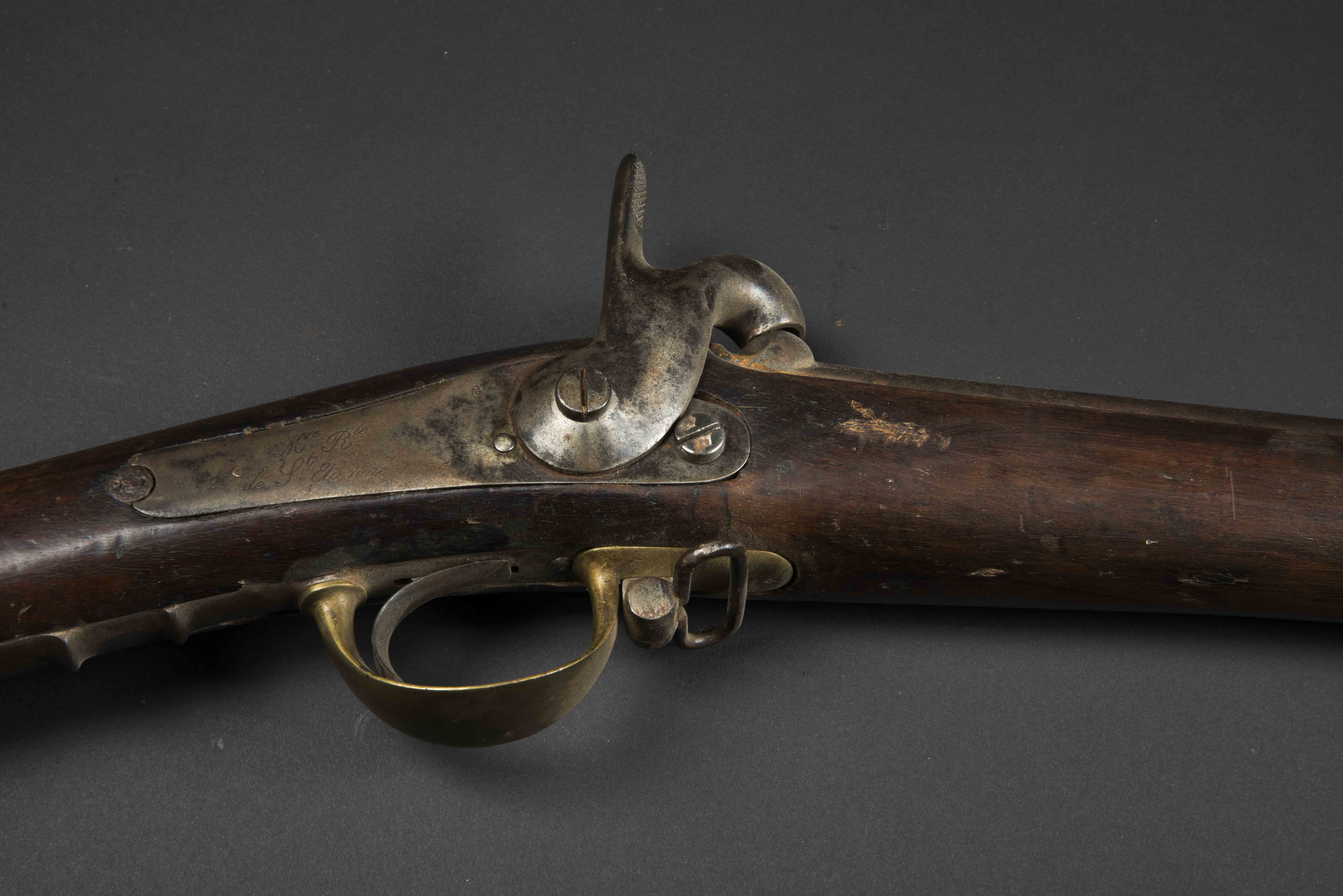 Détails de la vente >Platine de la Manufacture royale de St-Etienne. Avec baïonnette modèle 1847. A nettoyer mais bon état.