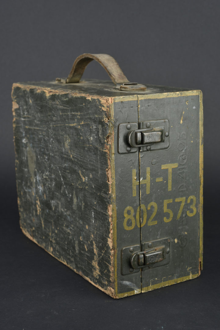 Détails de la vente >Grailleuse en métal, visiblement complète, marquée Browning Belt Filing Machine Model of 1918. Caisse bois, complète, marquée HT 802573. A noter une certaine usure de la pièce.