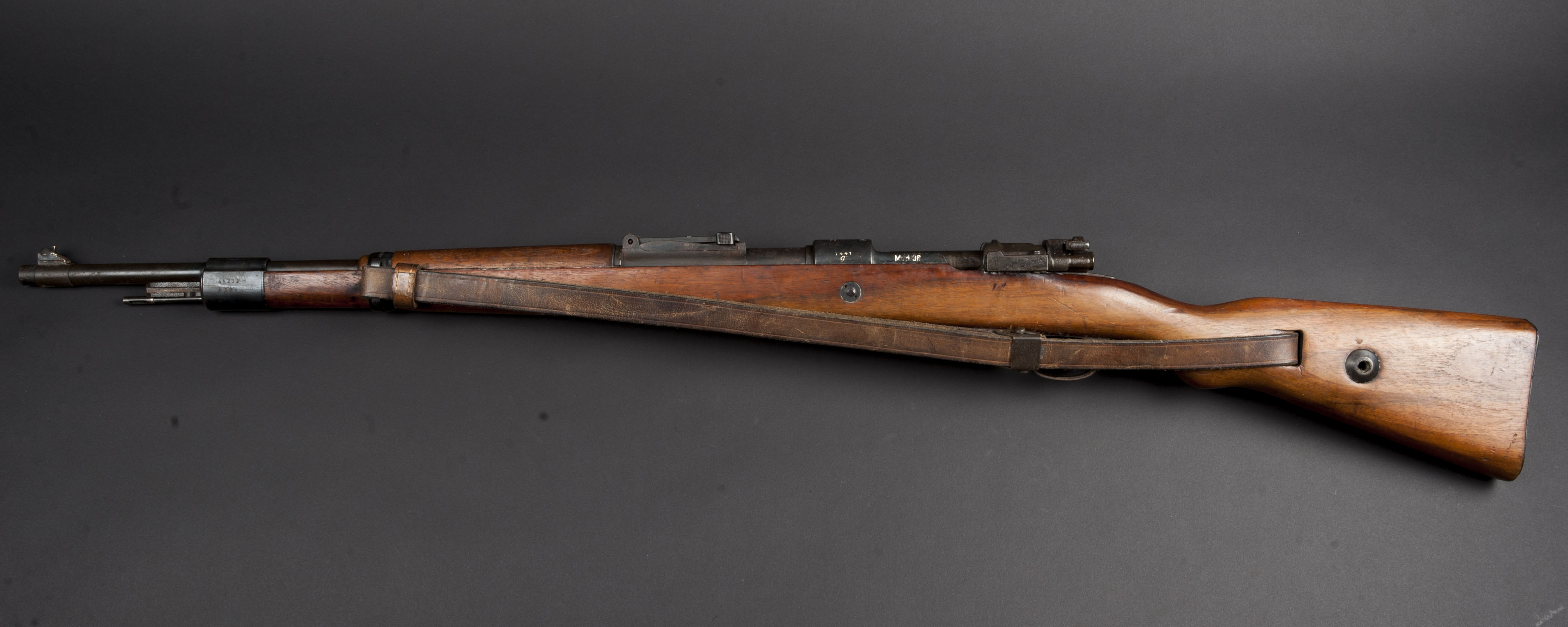 Crosse en bois, sans marquages visibles. Baguette de nettoyage présente. Fabrication 237, daté 1939. Numéro 7441G. Marquages sur le canon G 2658. Arme pas au même numéro. Bretelle en cuir... en savoir plus