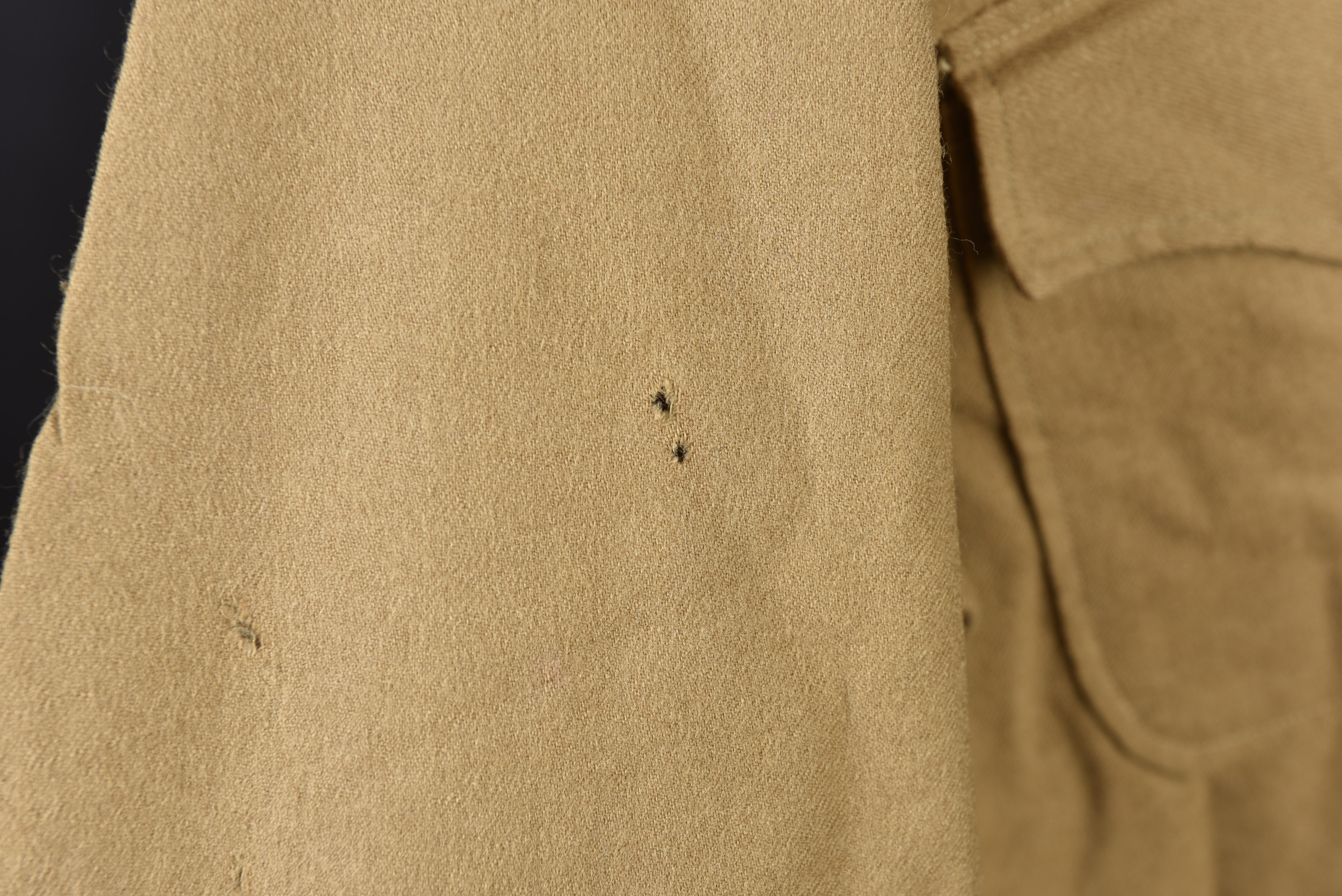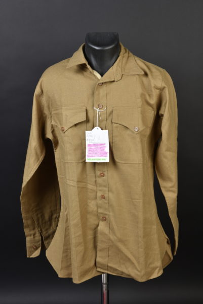 En drap kaki, tous les boutons sont présents. Pièce jamais portée ni nettoyée. Indication nominative Sgt Sam Adams. A noter quelques trous de mite au niveau du bras droit. 38 chest, named to... en savoir plus