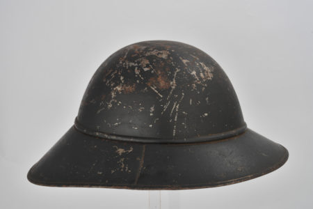 Casque genre Adrian, modèle dit de chapelier, peinture bleue. La boucle de la jugulaire est absente, coiffe un peu fatiguée en assez bon état, bonne peinture avec trace de manipulations. Etat... en savoir plus