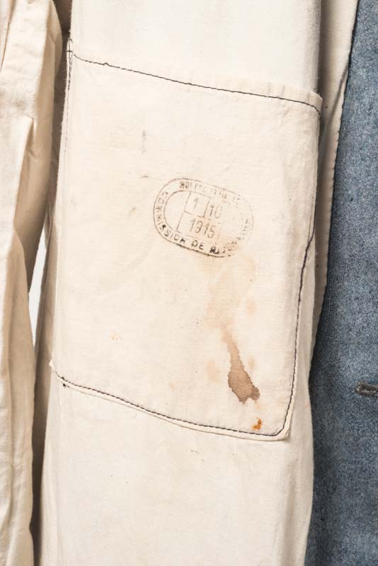 Vareuse troupe en drap bleu horizon, du 41e régiment d’Infanterie du type du modèle 1914, datée 1915. Beaux tampons à l’intérieur. Etat II