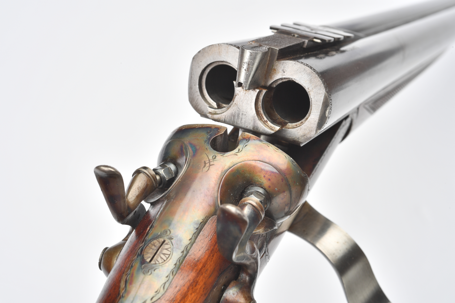 Fusil double express par Grasset. Calibre 11mm Gras, double carabine à canons juxtaposés, bande creuse guillochée, hausse à trois feuillets, guidon sur embase, boîtier de culasse rond,... en savoir plus