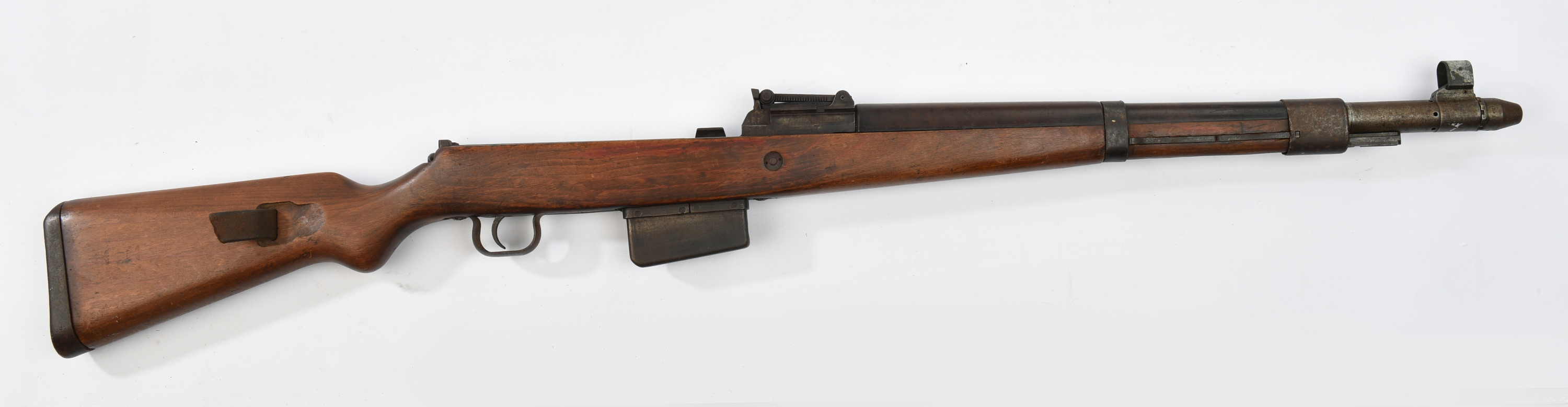 Fusil semi-automatique G41 Catégorie B. Calibre 7,92mm. Fabrication « DUV 43 ». Numéro « 1216D ». Crosse en bois et bretelle en cuir (incomplète) montée d’origine. Bloc culasse... en savoir plus