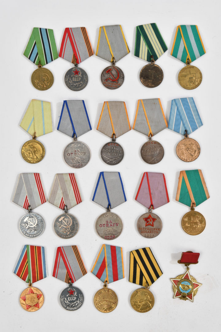Lot de 20 médailles soviétiques : développement du complexe pétro-gazier de la Sibérie occidentale, vétéran des forces armées, mérite au travail (ruban pas bon), construction du chemin... en savoir plus