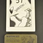 Accessoires radio USAAF. Comprenant une boite en carton, marquée US ARMY SIGNAL CORPS 1 each Microphone T-30-V, datée 1944, fabrication Shure Brothers Chicago USA. Contenant le laryngophone complet...